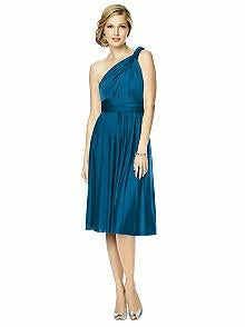 The convertible dress ! Change the wrap to change the look. Available in cocktail length or full length, your bridesmaid dresses can match or each can create her own style. Constructed in luxurious, hand washable maracaine jersey (dress is un-lined), the Twist dress packs well and is ideal for destination weddings, prom, or even your honeymoon. The best part? No alterations needed! “How To Wear” Instructions: PDF | Web See also: the Long Twist Dress.