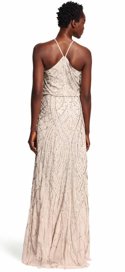 SKU: adrianna-papell-1813527494713 Categories: All Bridesmaid Dresses, Gray, Metallic, Shop By Color Tags: Designer: Adrianna Papell, Floor, Halter, High Neck, Length: Floor Length, Model: 091907930, Size: 18, Spaghetti Strap
