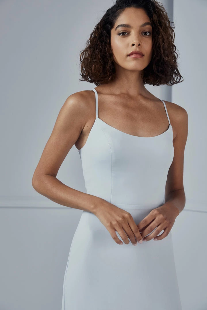 Camisole scoop neck dress with slim circle skirt in Flat Chiffon.