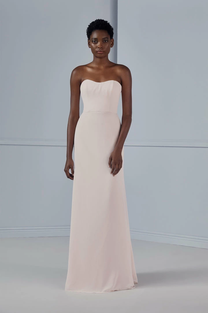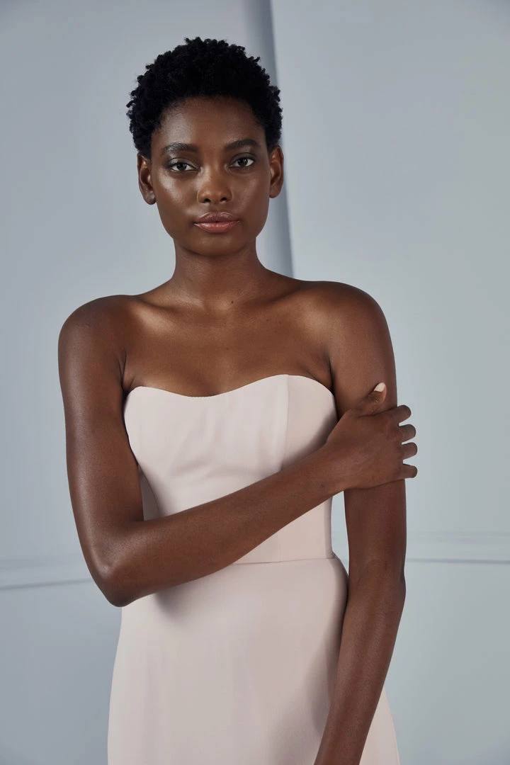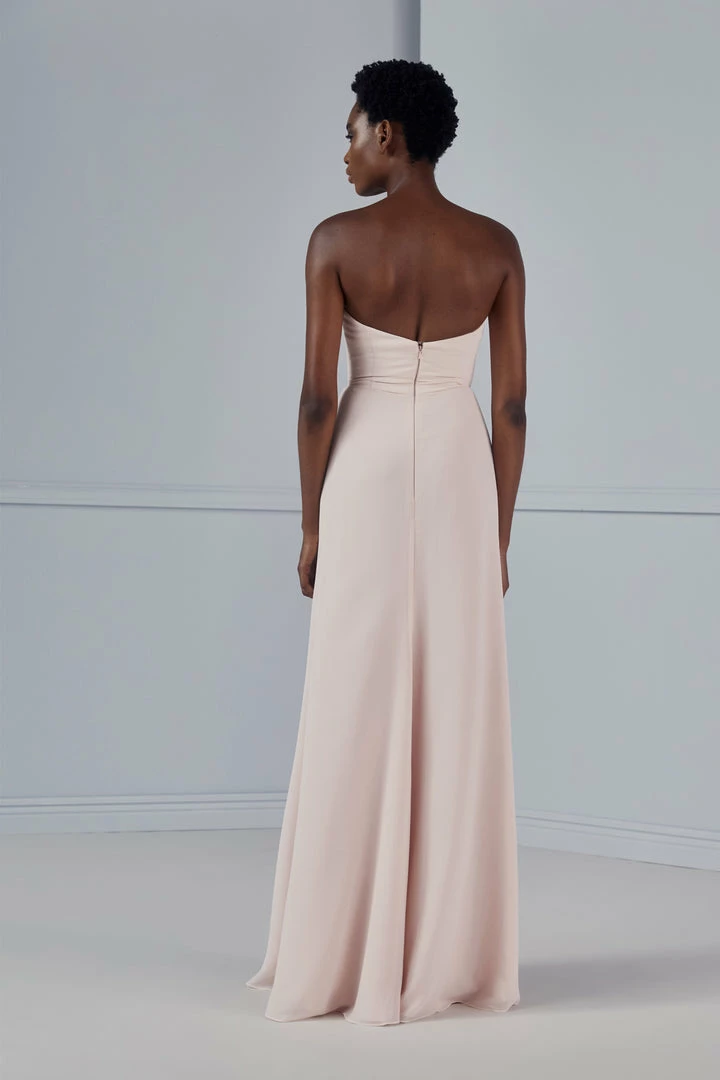 Strapless curved neckline dress with slim circle skirt in Flat Chiffon.