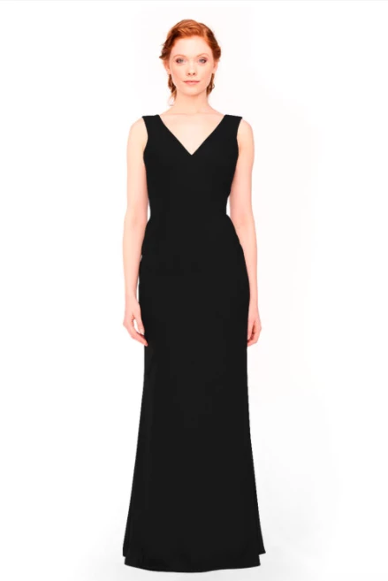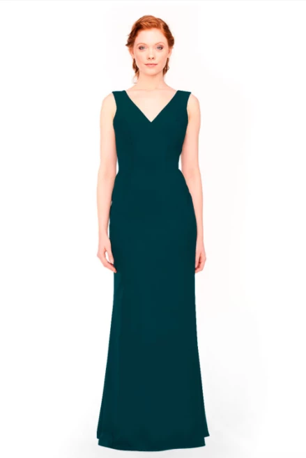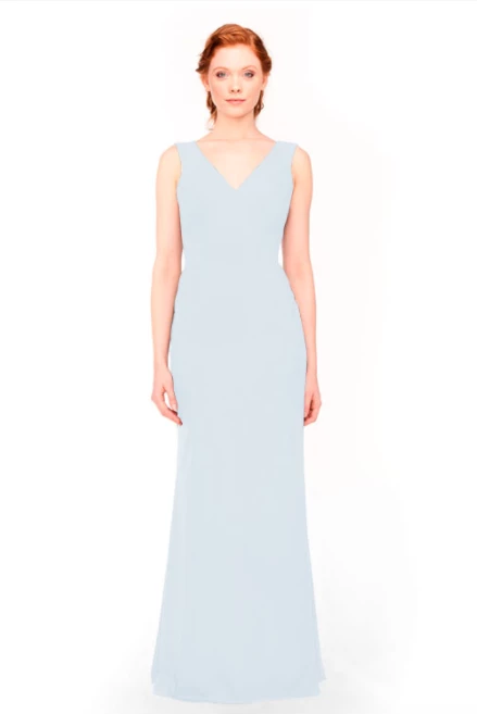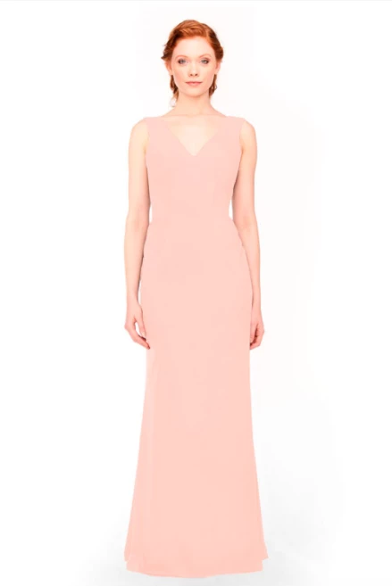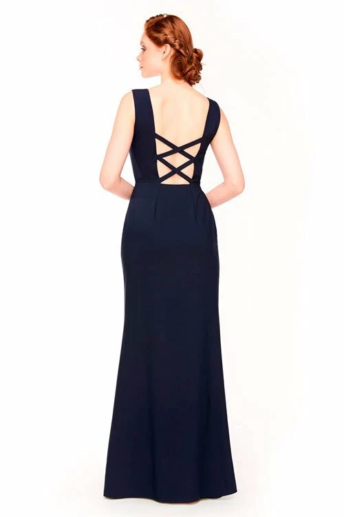 Bari Jay Bridesmaid Dress 1959 –Â Thick strapped V-neck with open back & criss-cross detail. Side seam zipper.