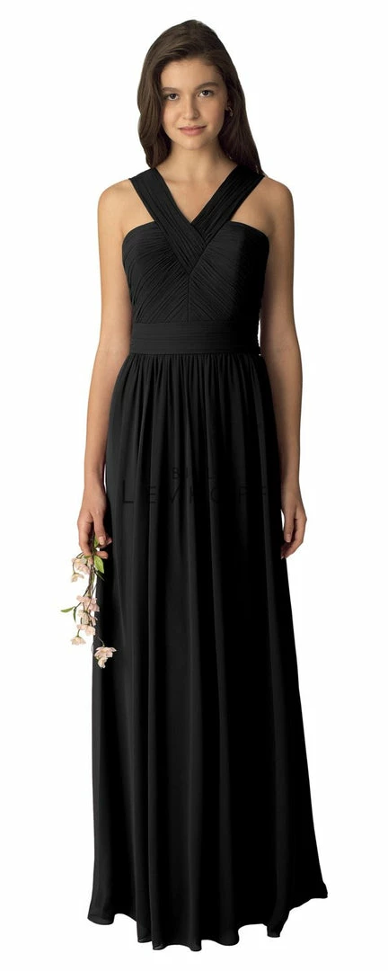 - Chiffon full-length bridesmaid dress.