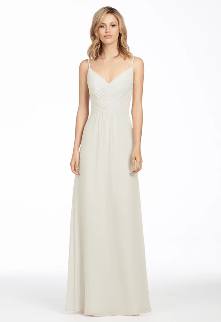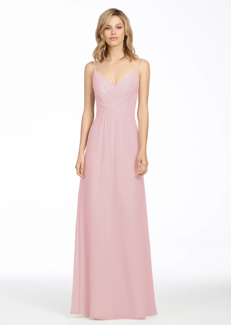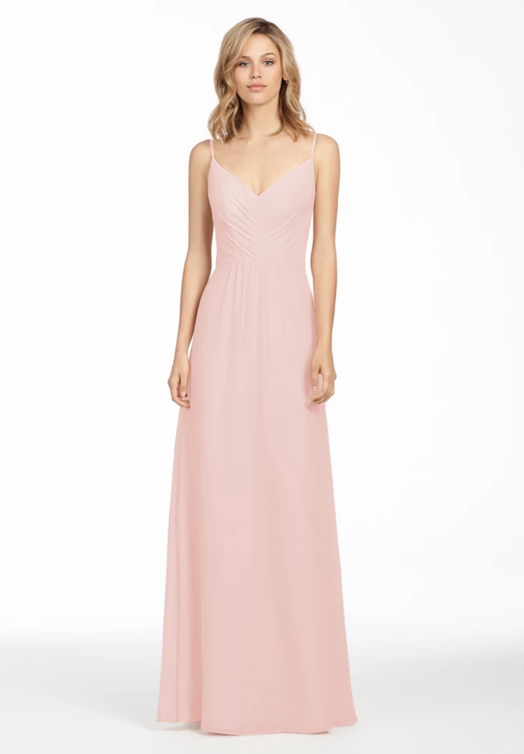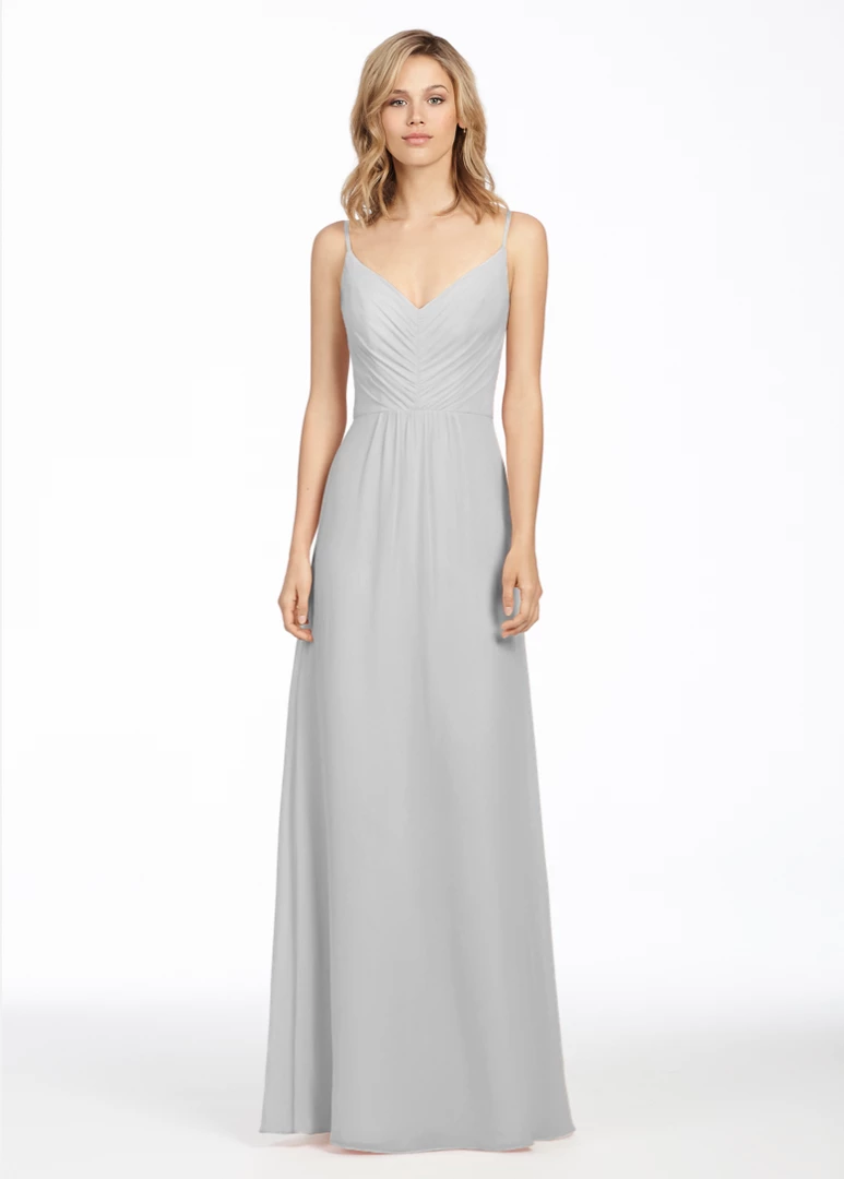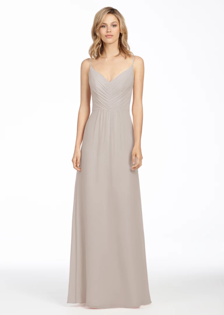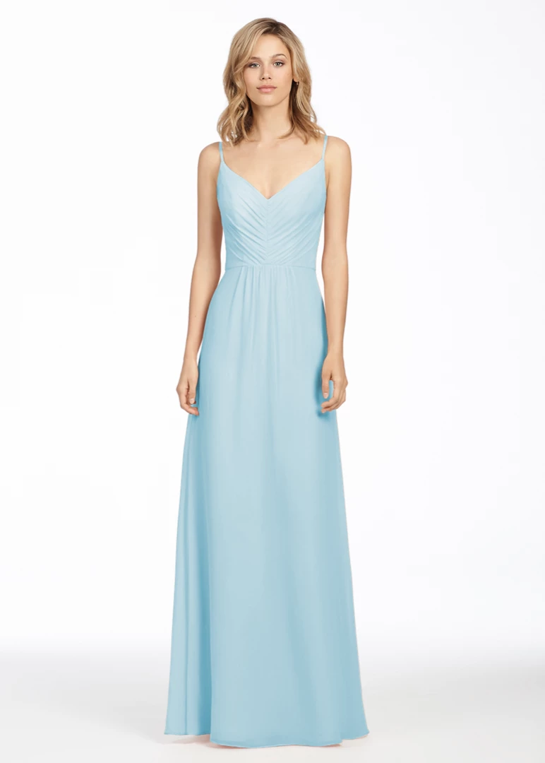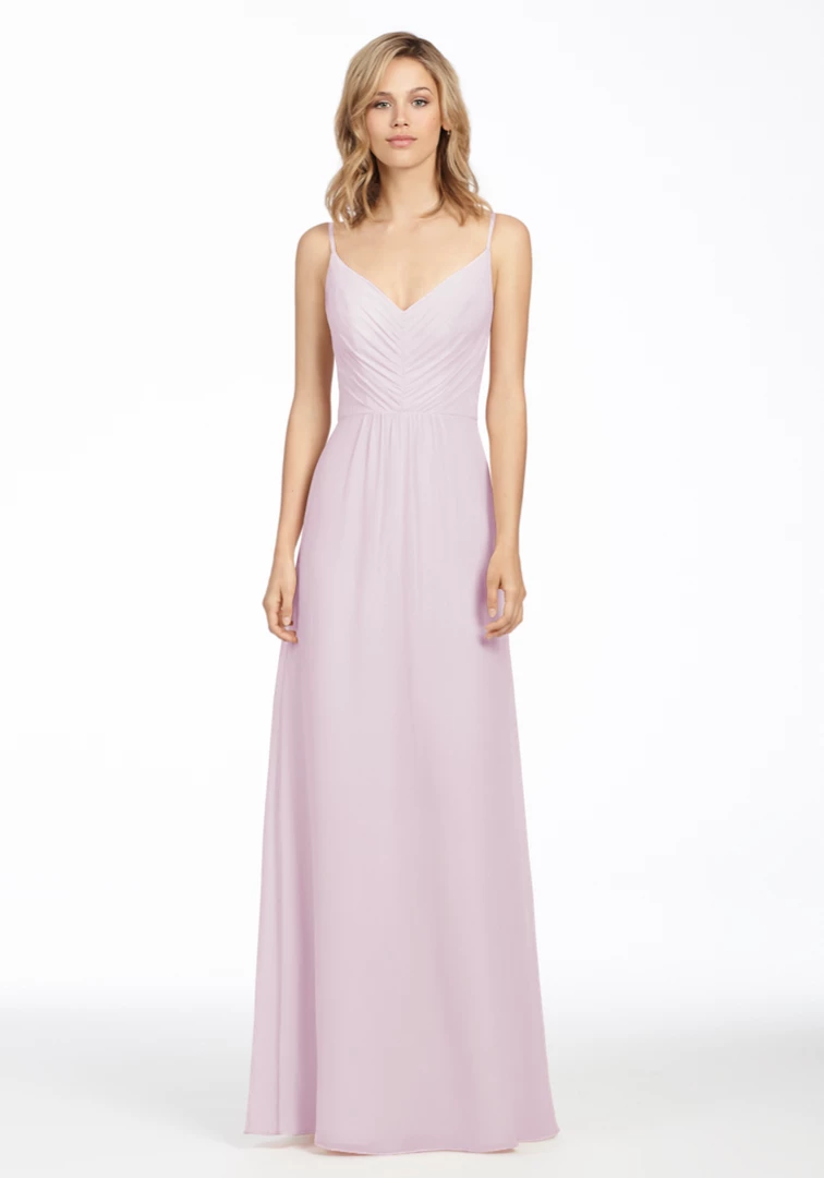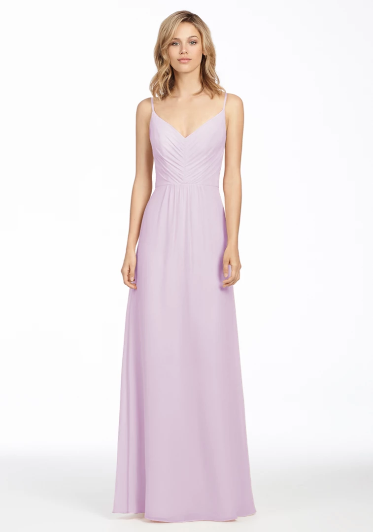 Hayley Paige Occasions – Draped v-neckline with a soft gathered skirt in chiffon.