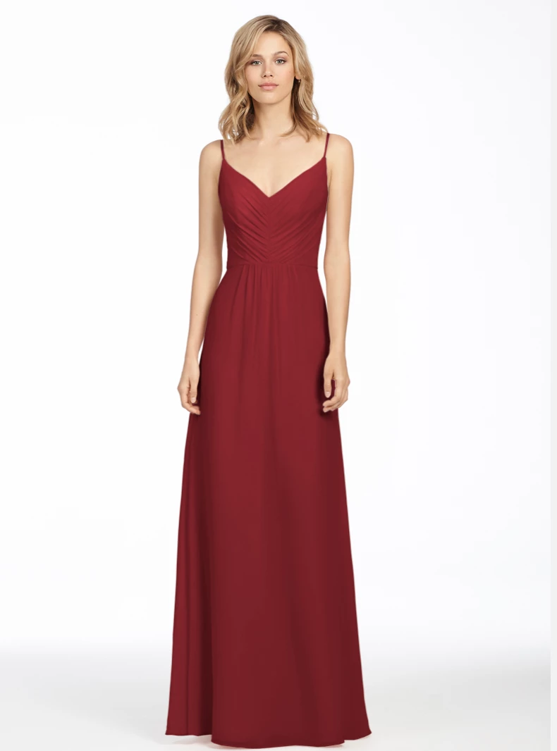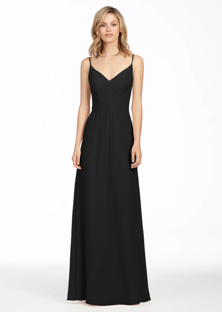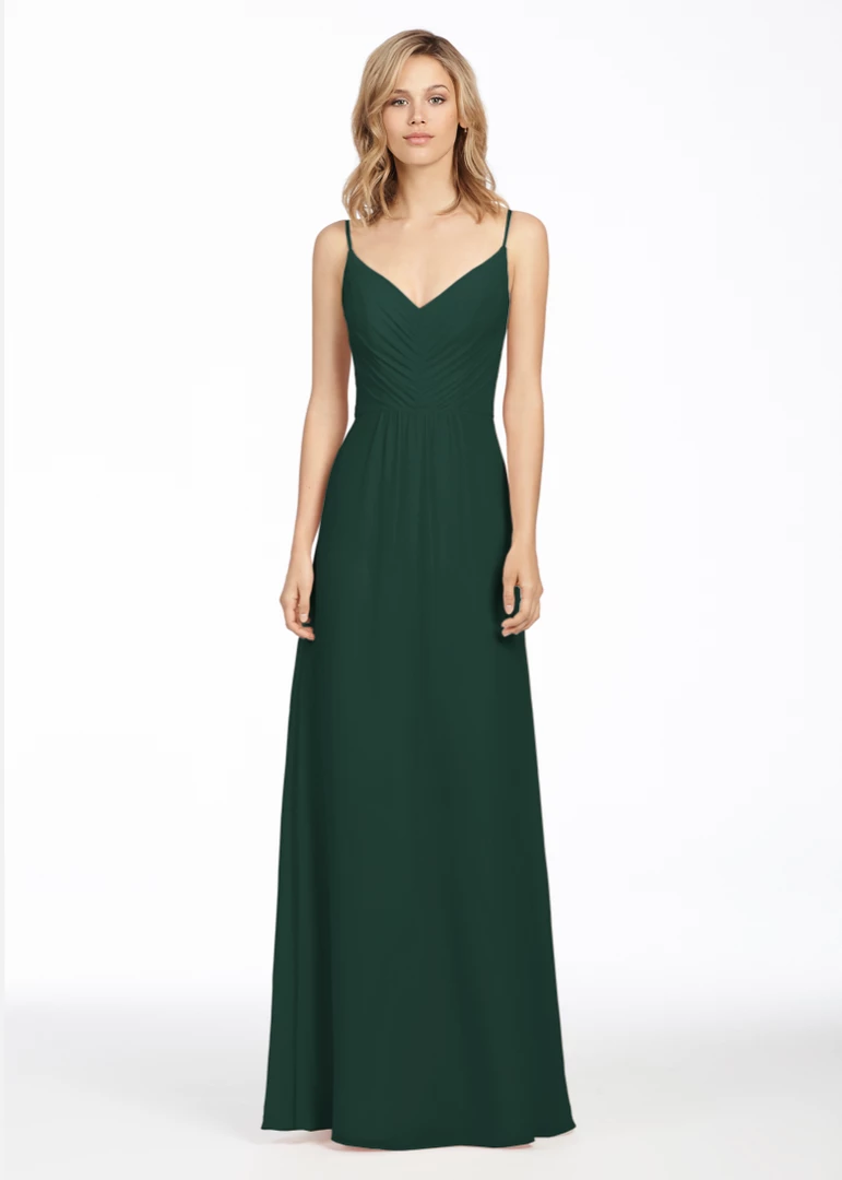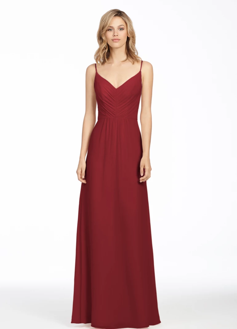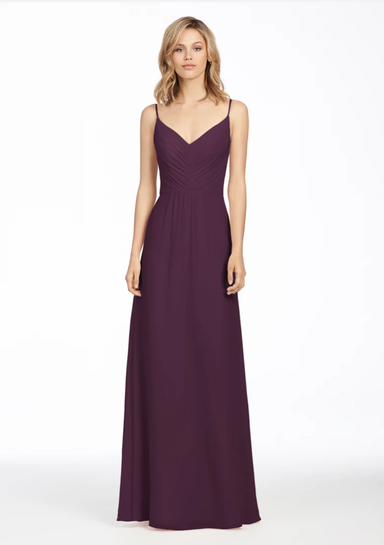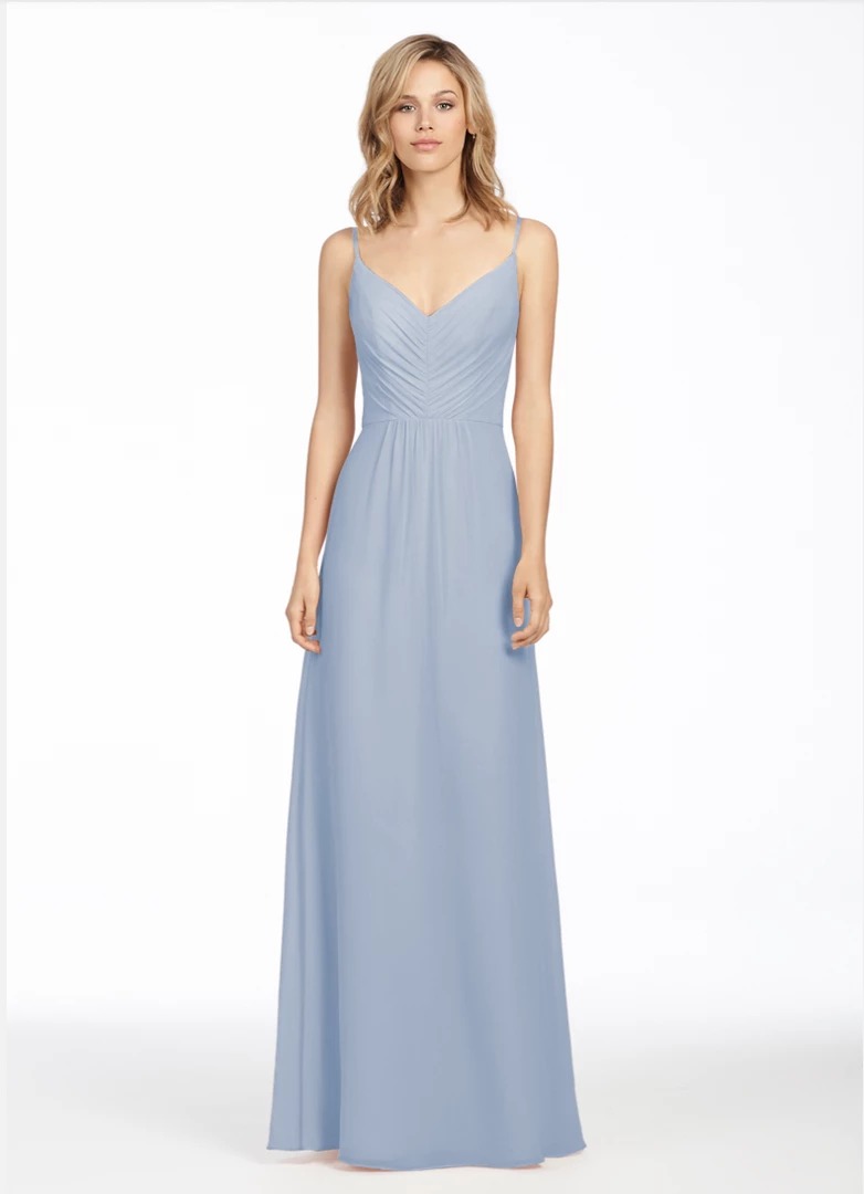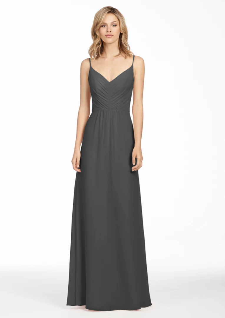Hayley Paige Occasions – Draped v-neckline with a soft gathered skirt in chiffon.