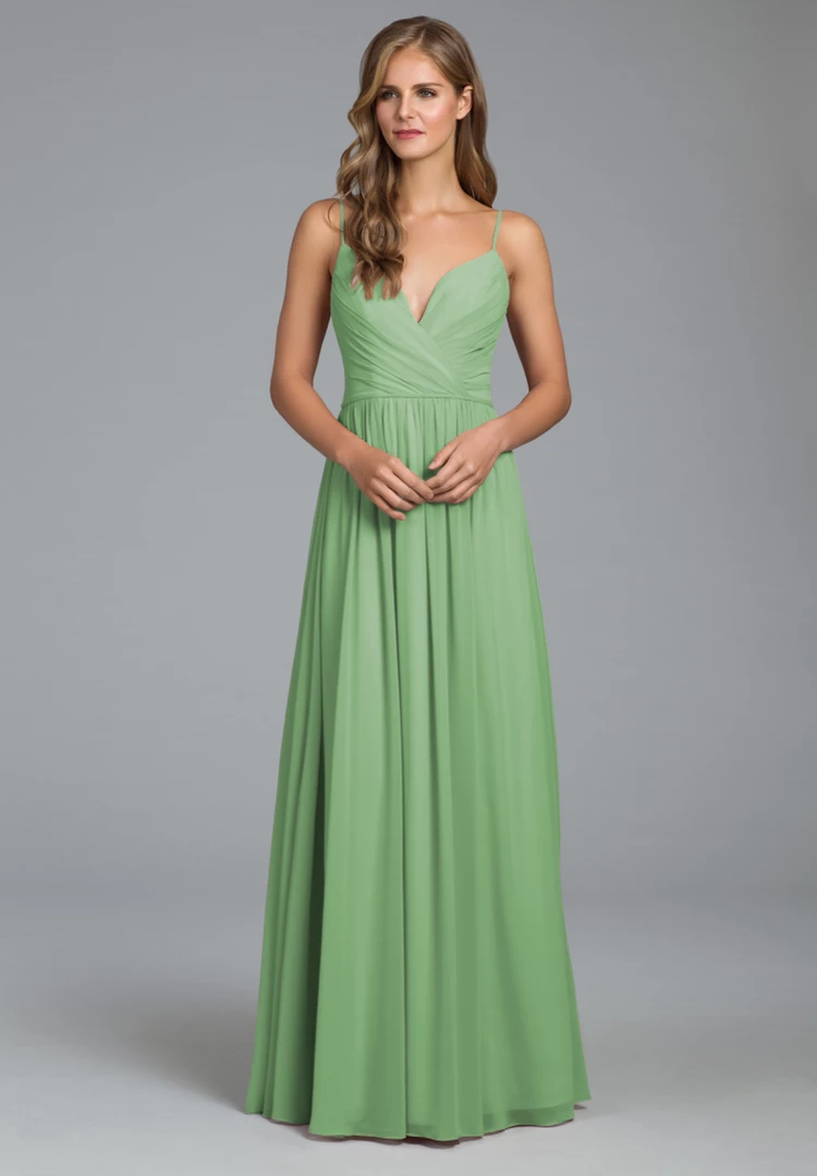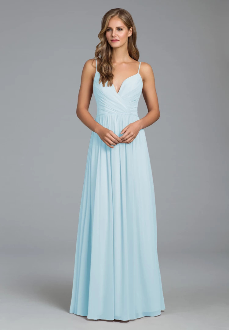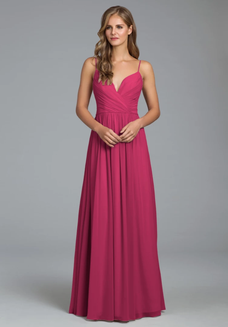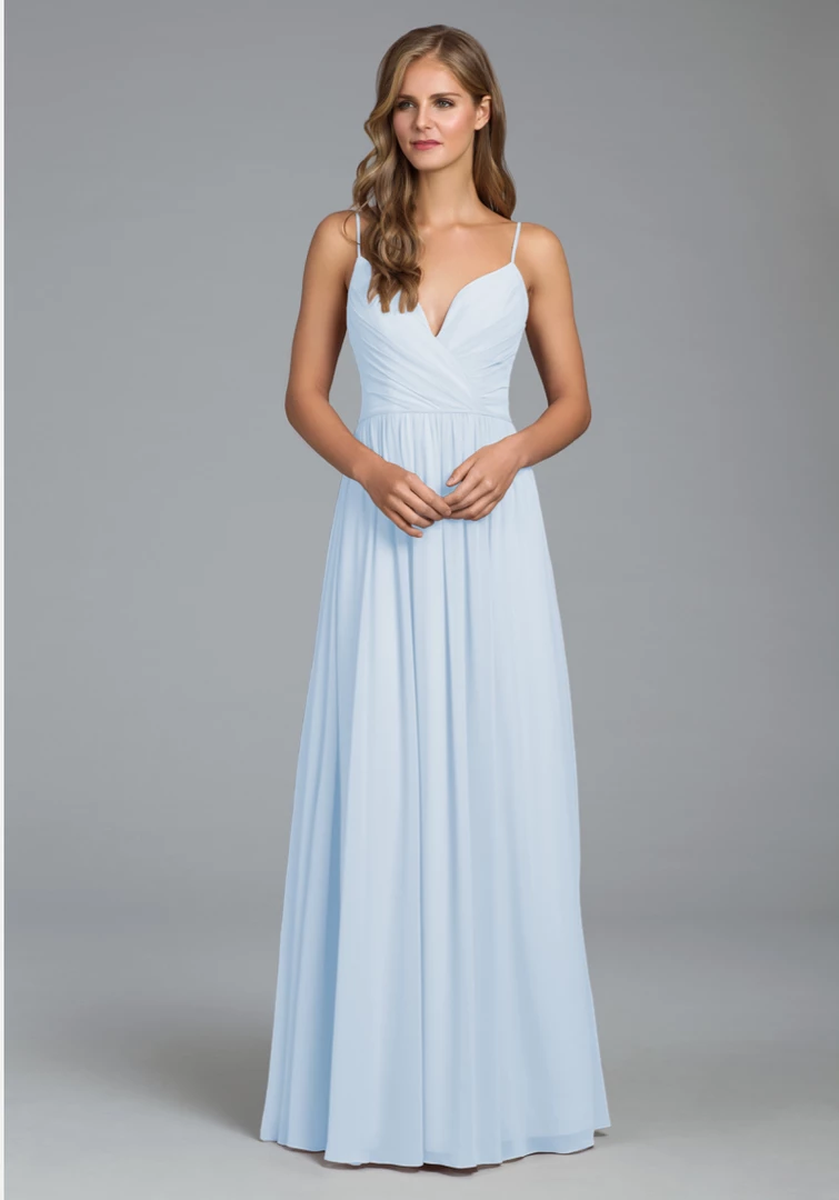 Crossover draped bodice, open back with crisscross detail in chiffon.