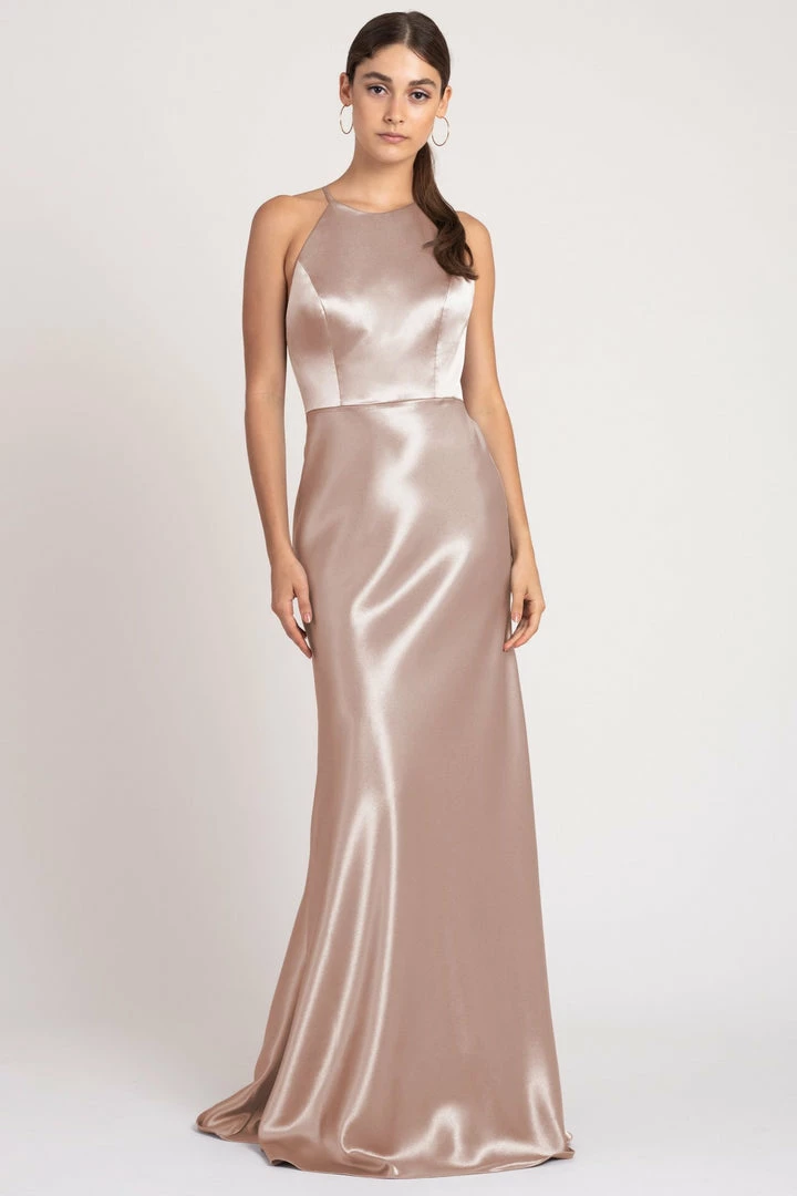 Be the fun bridesmaid in Alessia‚ strappy back in Crepe Back Satin.