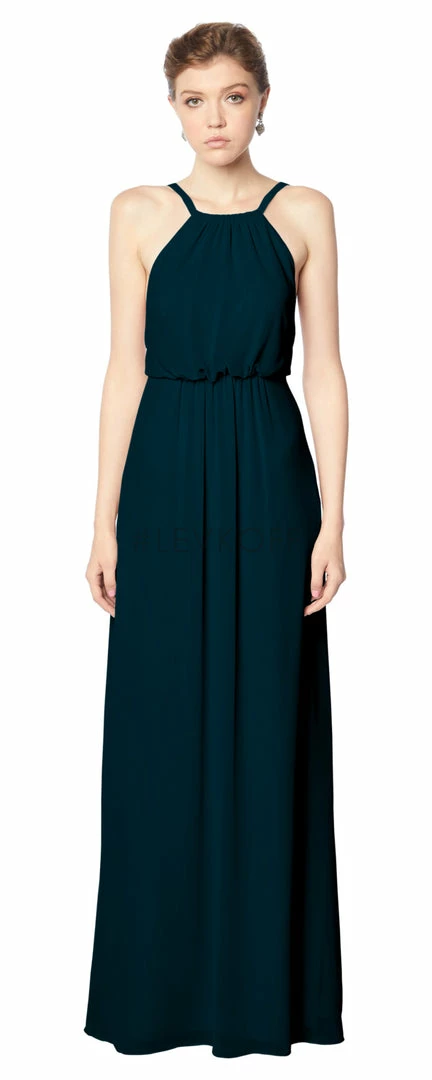 - Chiffon full-length bridesmaid dress.