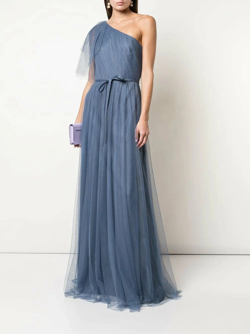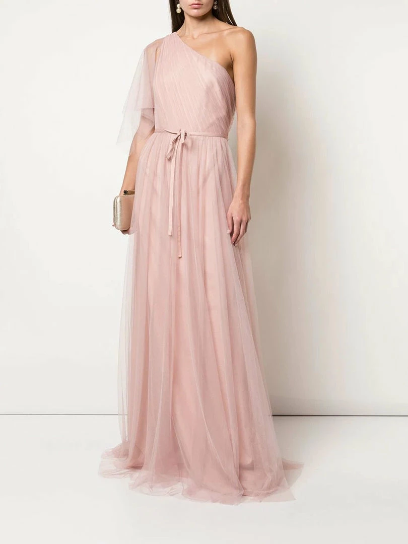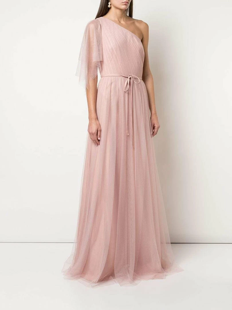 Marchesa Notte One Shoulder Handkerchief Bridesmaid Dress.