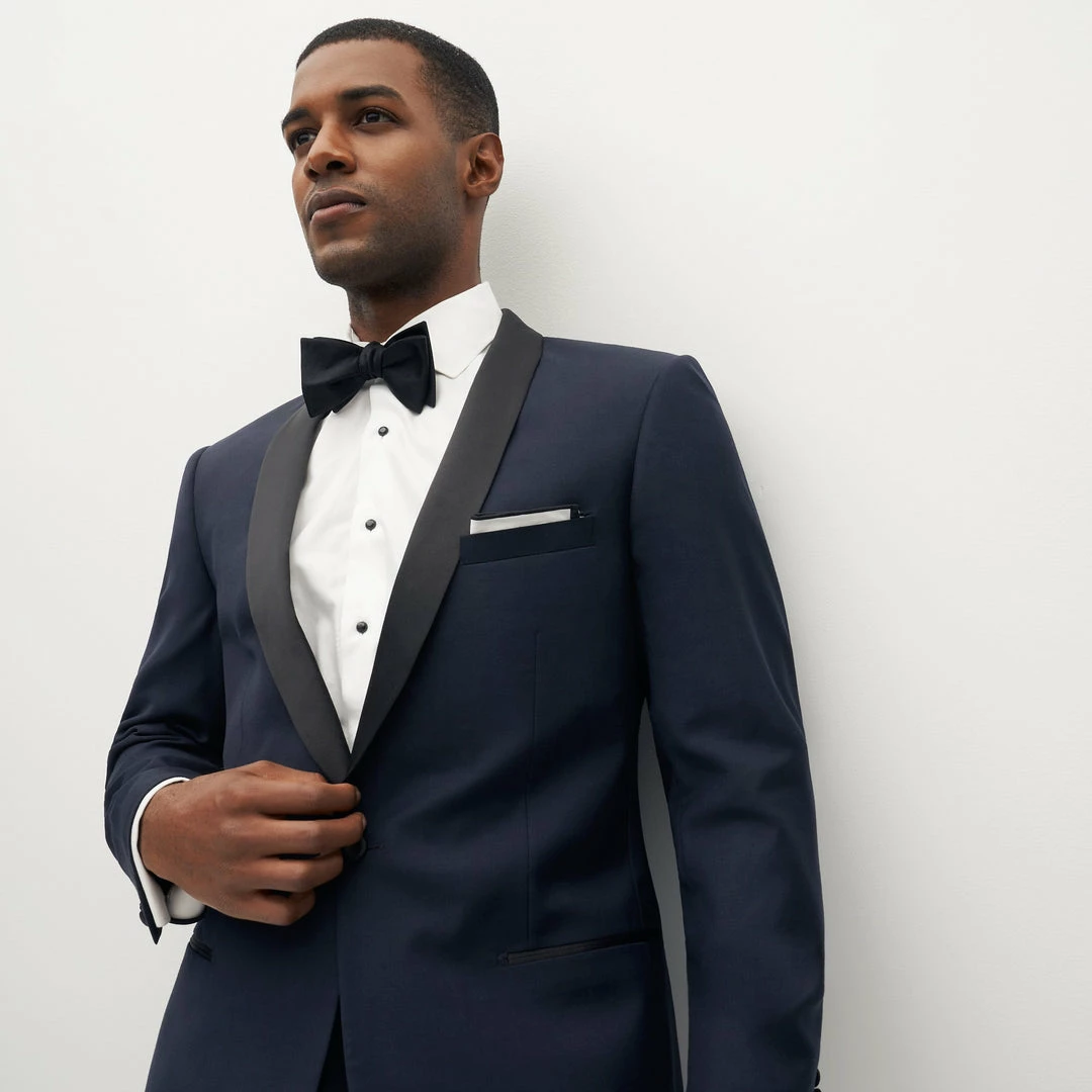 Limited Edition Style: You will be the best dressed man in this Italian made navy tuxedo with black shawl collar lapel. From the rich navy color to the paisley print lining, this tuxedo is beautiful inside and out. You must be ready for nonstop compliments!