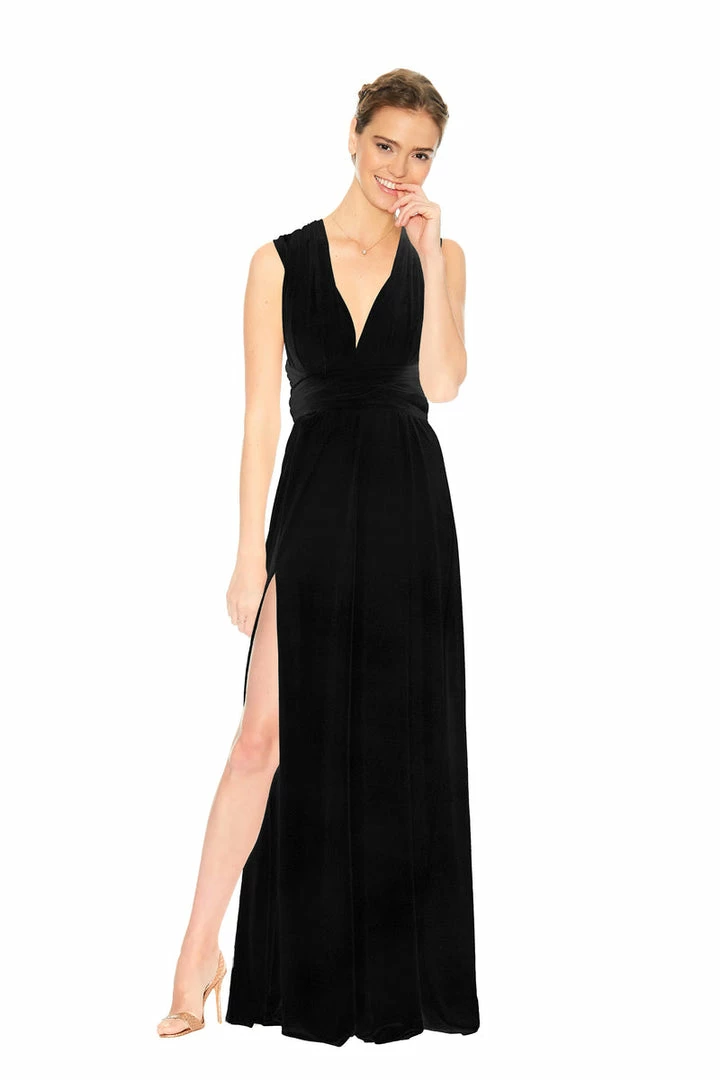 Our Classic Convertible Bridesmaid Slit Dress is a slimmer and sexier version of our Ballgown. It features the same convertible wrap top that can be tied over 15 different ways, but itβ made with a little less volume to allow for lighter weight and sleeker style.