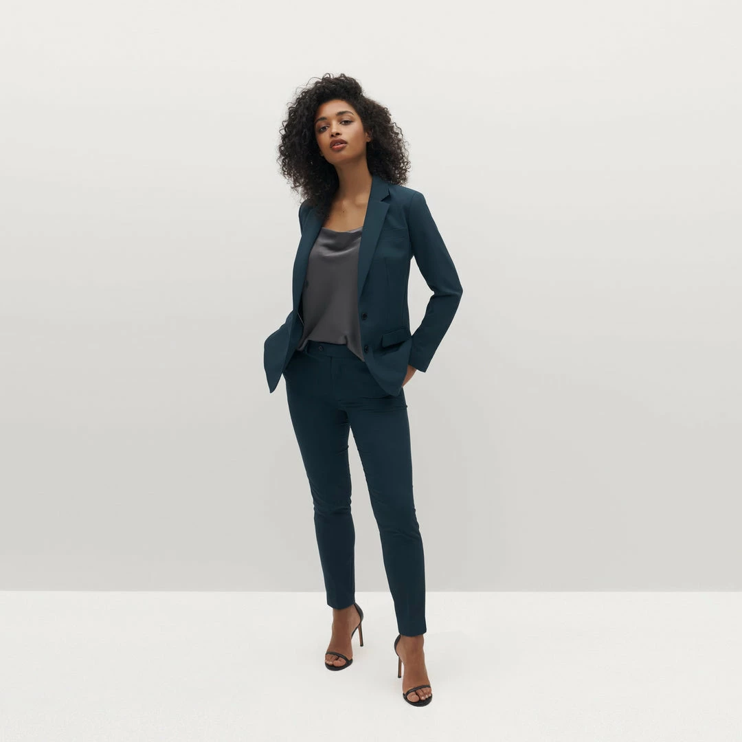 Limited Edition Style: Test the waters with something daring; our women’s teal suit brings something bold to this timeless silhouette. Inspired by the deep shades of the sea and designed for a tailored aesthetic, our dark teal suit brings on the non-stop comfort and compliments. Upgraded Eco Stretch fabric keeps this look wonderfully wearable, all day and all night long.
