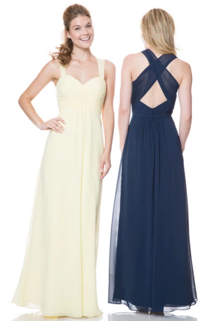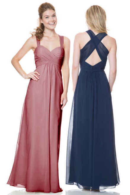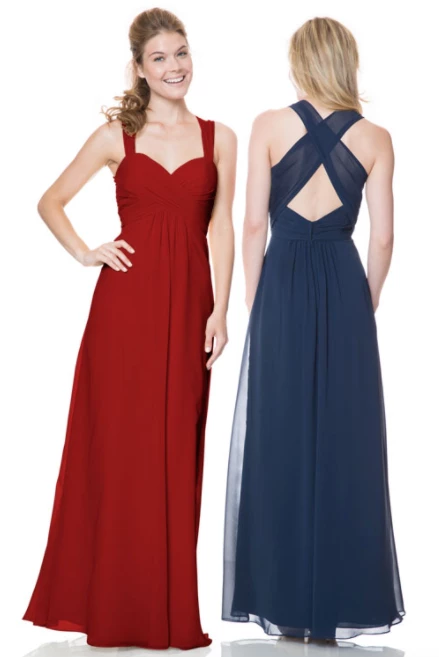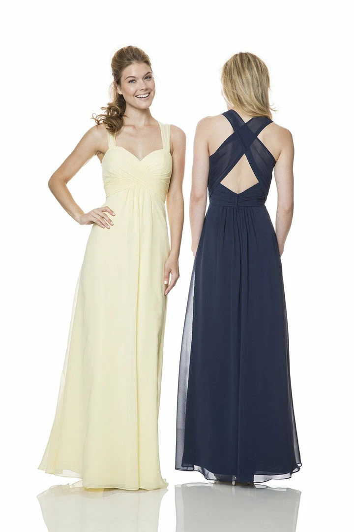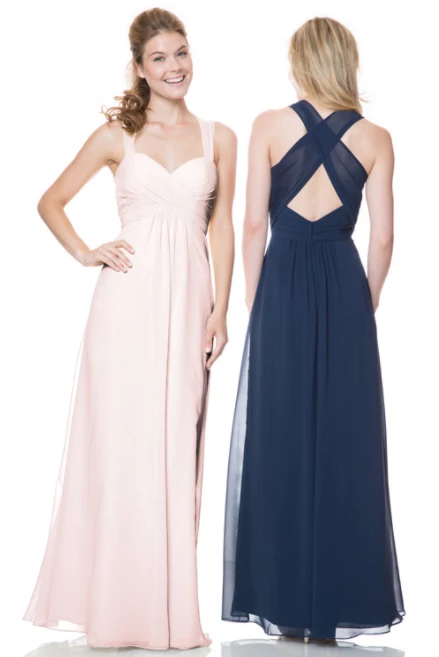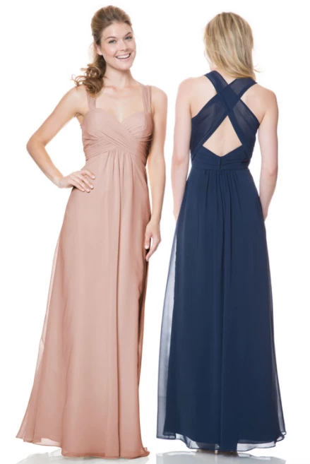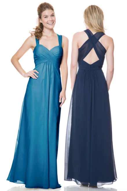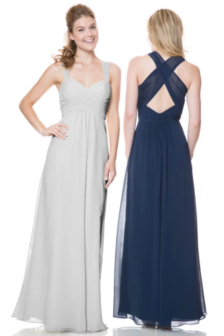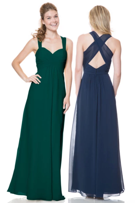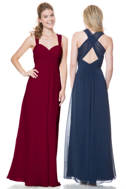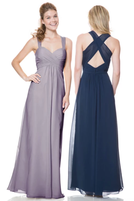 Bari Jay Bridesmaid Dress 1508 –Â Sweetheart shirred bust; empire waist, with sheer criss-cross back.