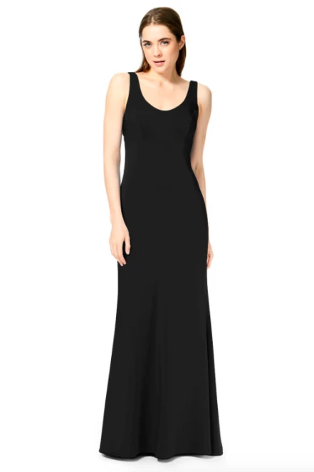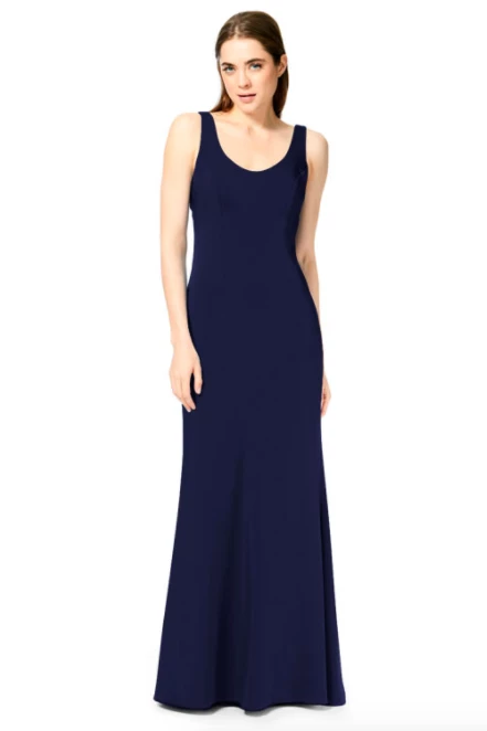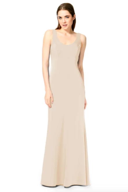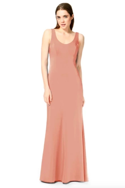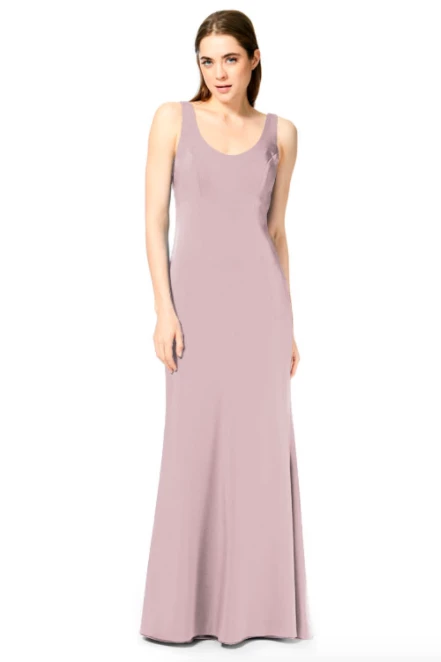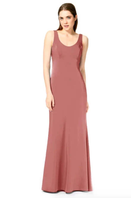 Bari Jay Bridesmaid Dress 1887Â – Wide strap slim-fit stretch dress with a pleated low back and center back zipper.
