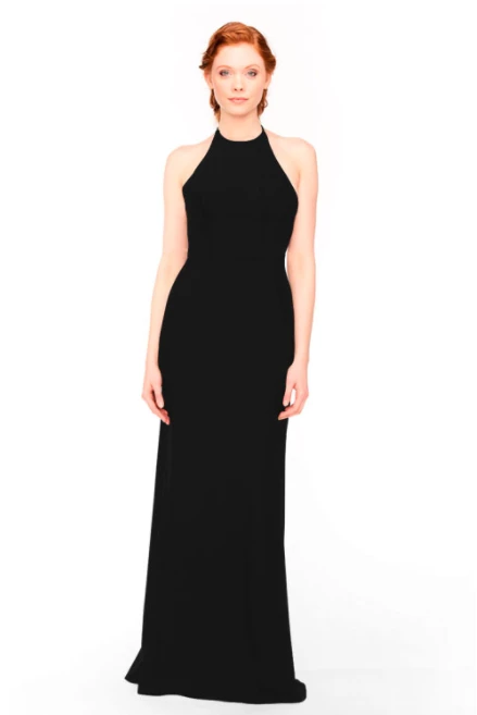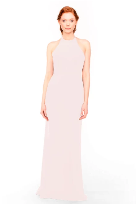 Bari Jay Bridesmaid Dress 1961 – Tied halter gown with an open back, waist twist & small side cutouts. Side seam zipper.