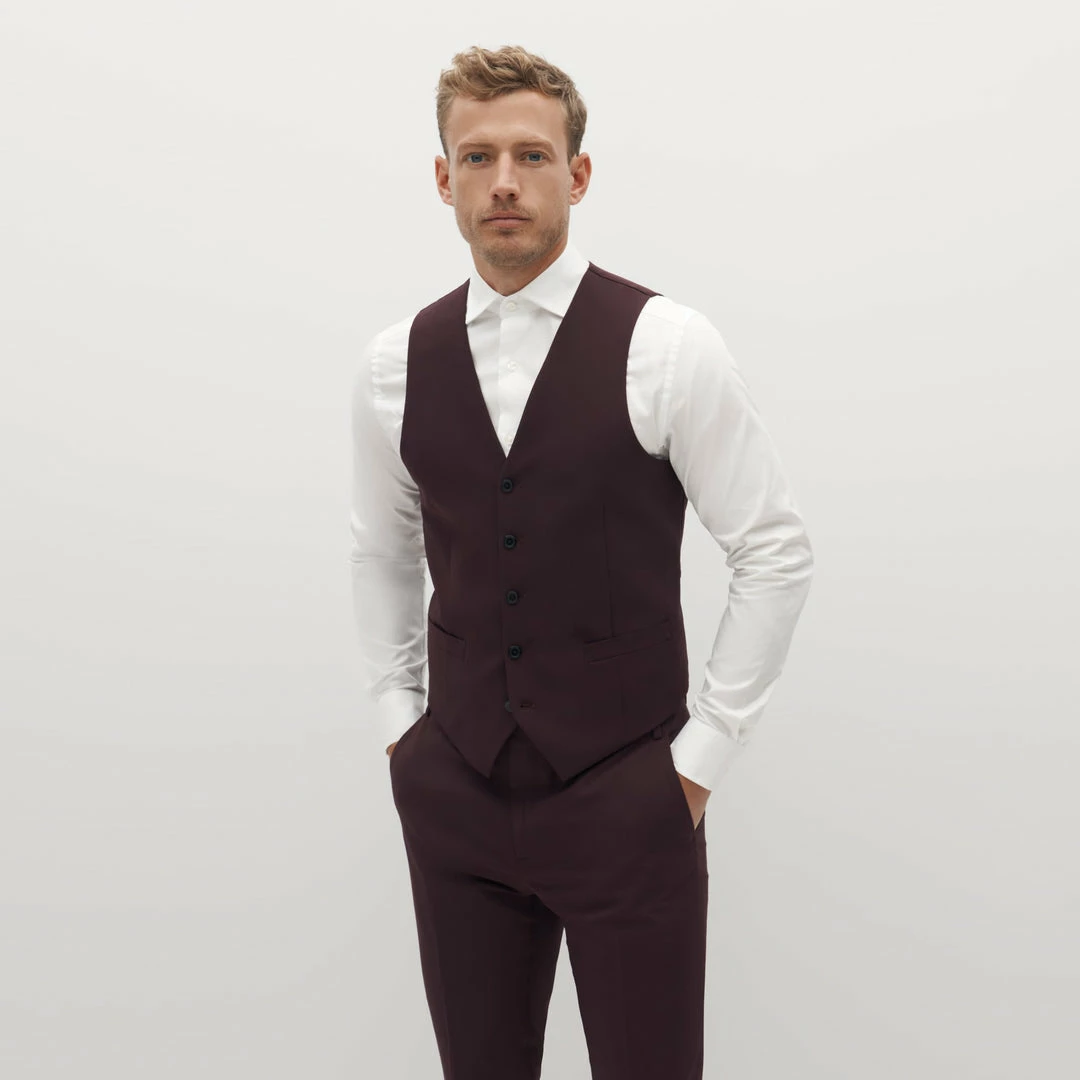 Want to feel more dapper? Add a vest to complete your burgundy suit, or wear this burgundy vest with slacks or jeans for a more casual—but still refined—look. You’re sure to turn heads no matter what.Â
