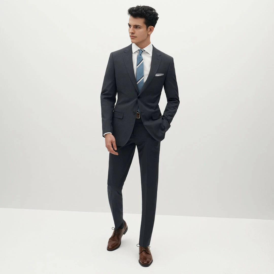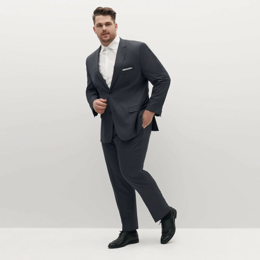 These charcoal gray flat front pants are a wardrobe necessity. Pair with our charcoal gray jacket and vest to complete your three piece suit.