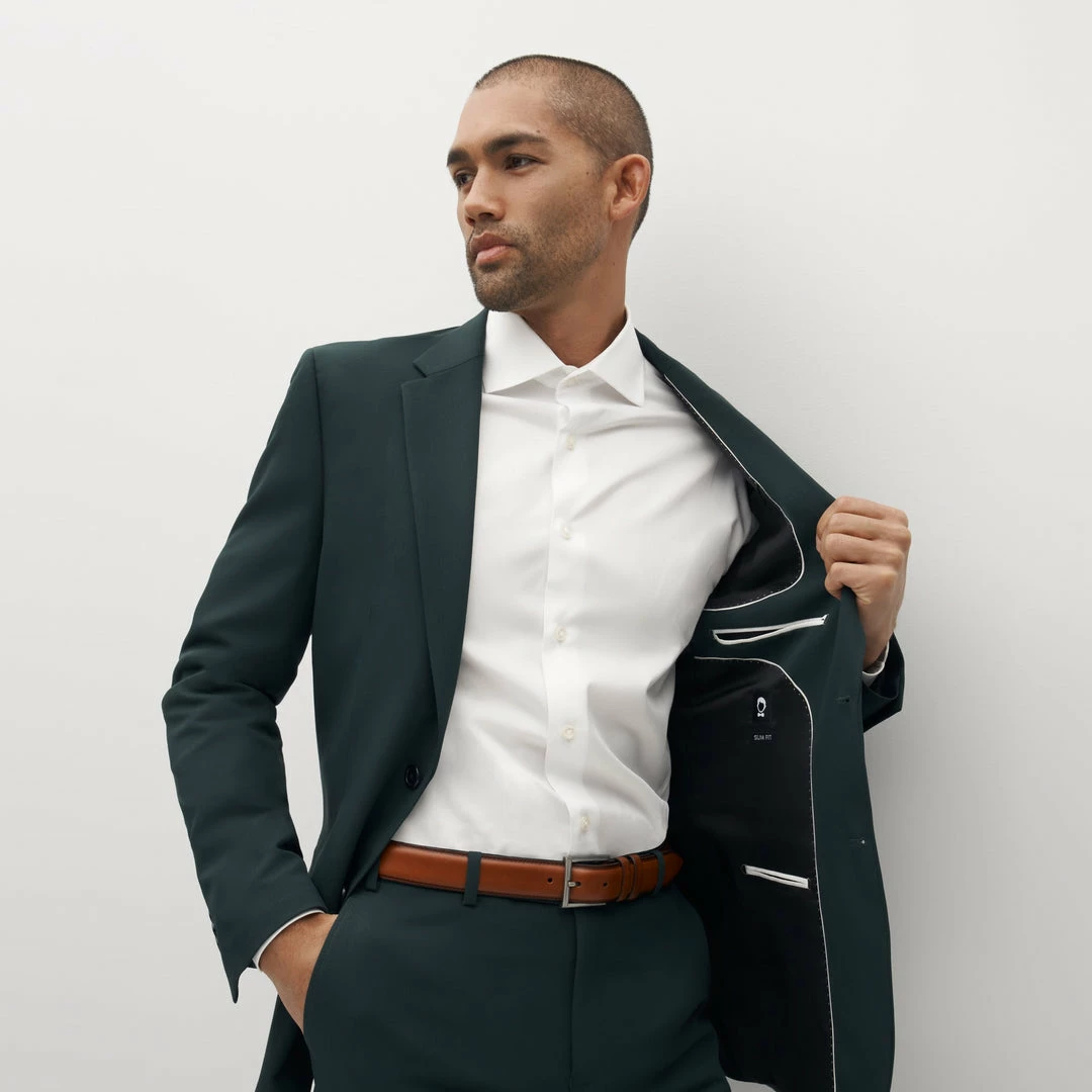 Take your style off the beaten path with our dark forest green suit. Sure to keep you sharp, our dark green suit is a rich, earthy shade, perfect for day or night, city or country, and everything in between. Combine this unique, dark hunter color with our deluxe stretch-fit fabric, and you’ve got the perfect suit for all-day comfort and style.