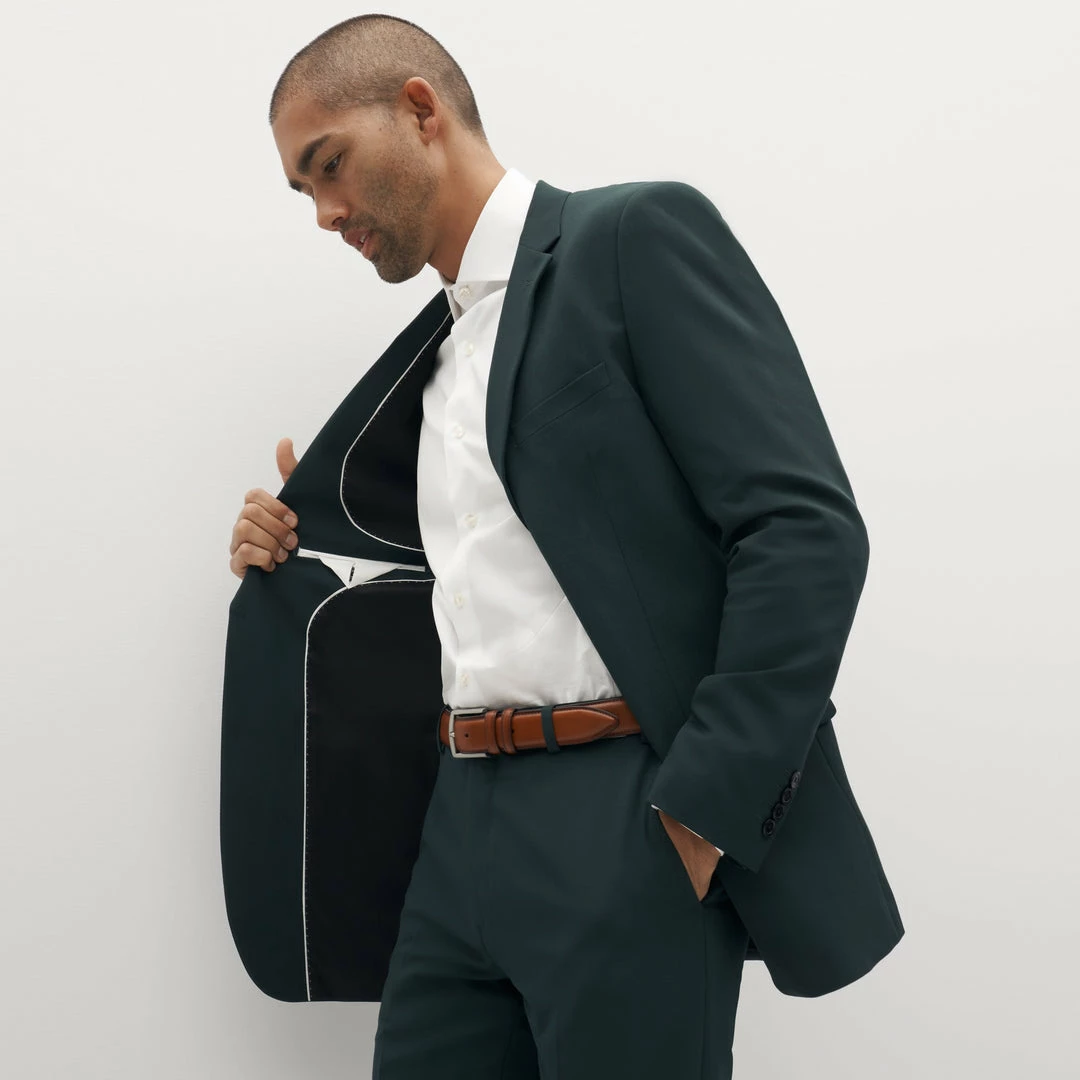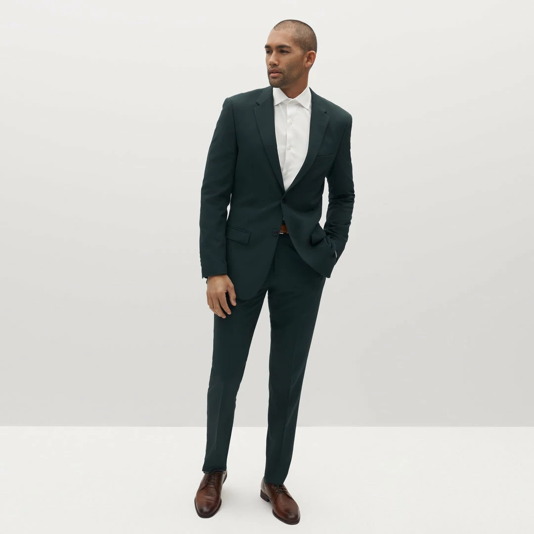 Take your style off the beaten path with our dark forest green suit. Sure to keep you sharp, our dark green suit is a rich, earthy shade, perfect for day or night, city or country, and everything in between. Combine this unique, dark hunter color with our deluxe stretch-fit fabric, and you’ve got the perfect suit for all-day comfort and style.