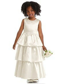 tiered matte satin sleeveless flowergirl dress with jewel neckline