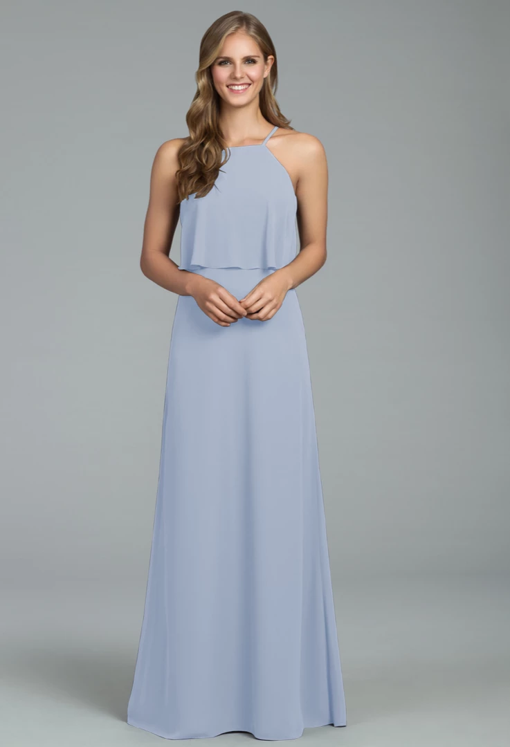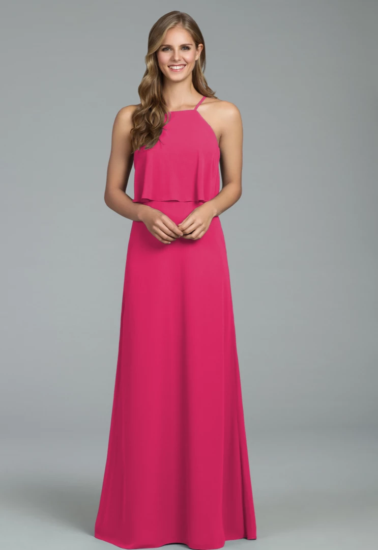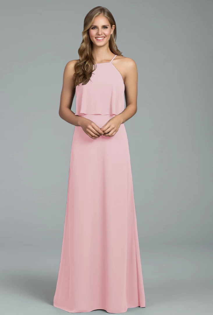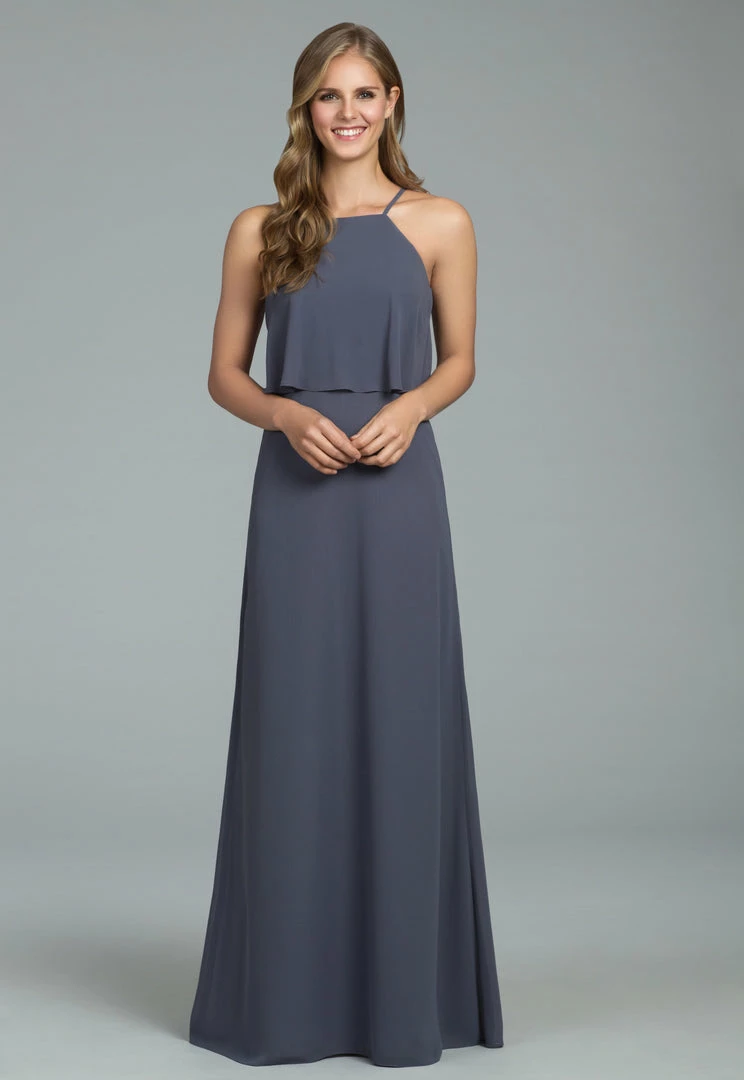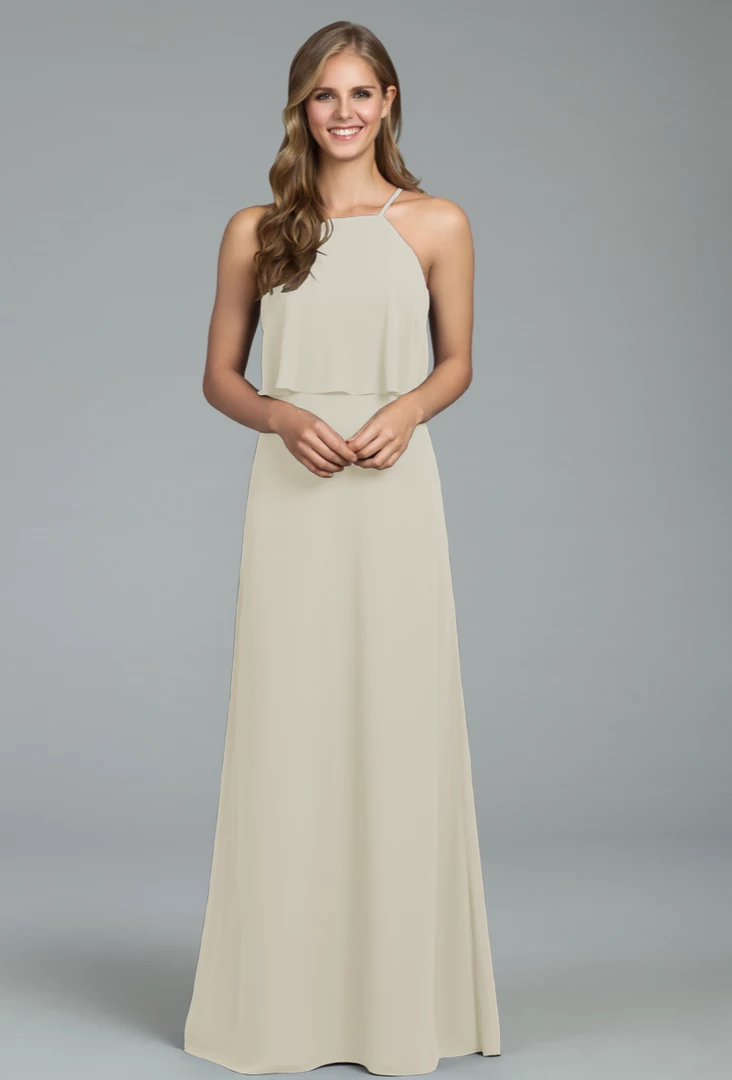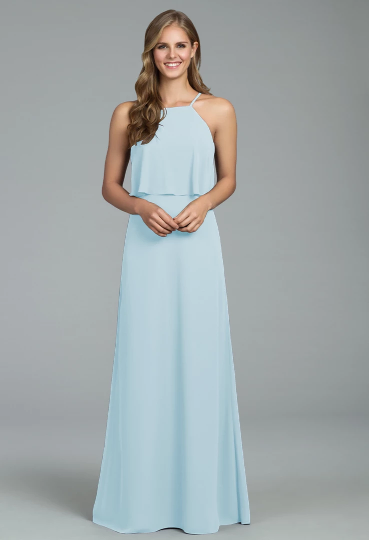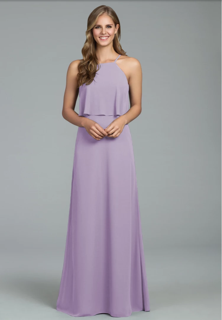 Hayley Paige Occasions bridesmaids dress – chiffon A-line bridesmaid gown with an overlay on the bodice.