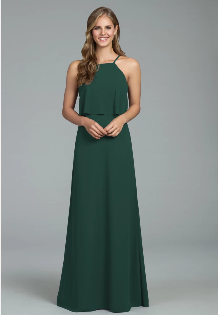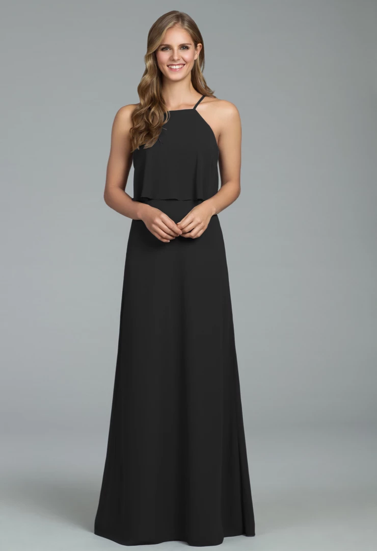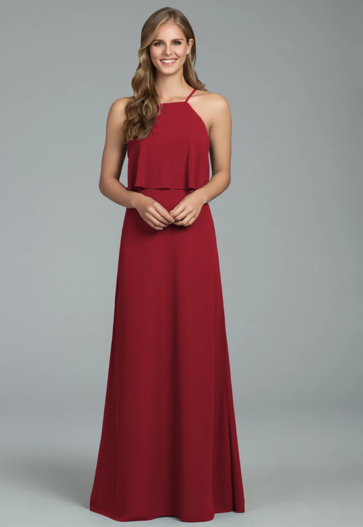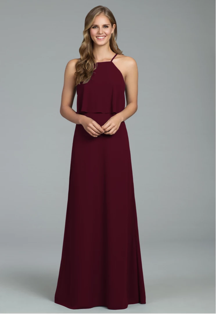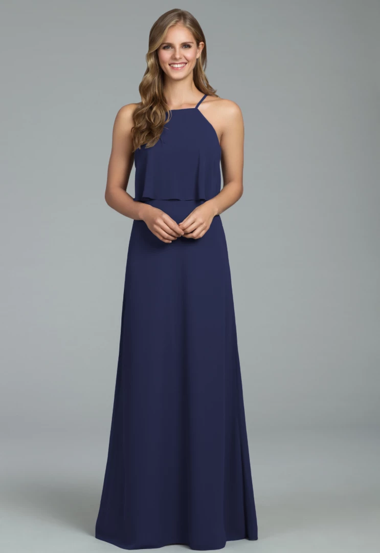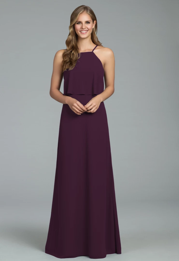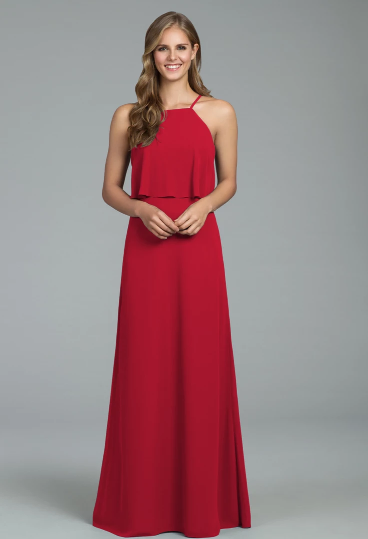 Hayley Paige Occasions bridesmaids dress – chiffon A-line bridesmaid gown with an overlay on the bodice.