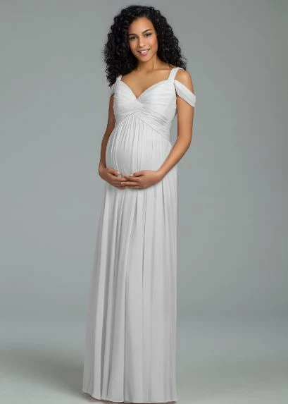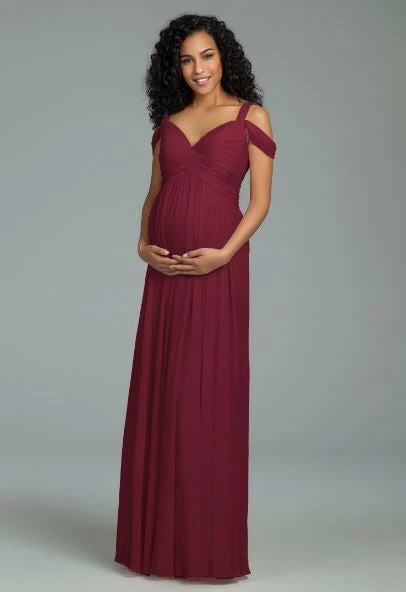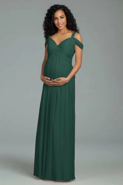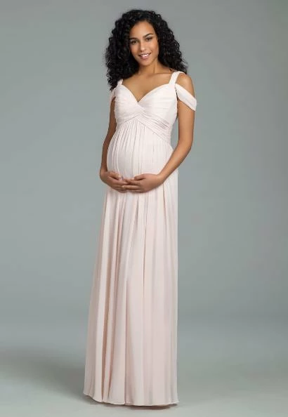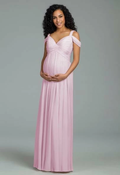 Hayley Paige Occasions maternity bridesmaids dress – Chiffon over Cashmere lining A-line maternity bridesmaid gown.