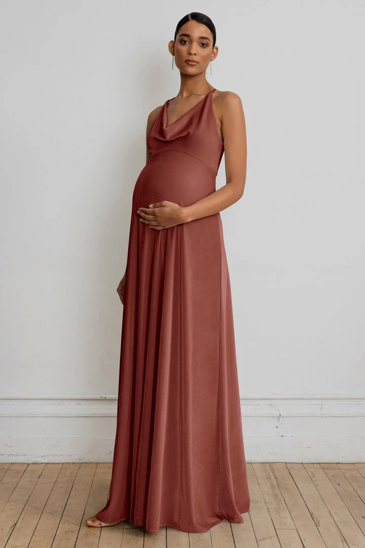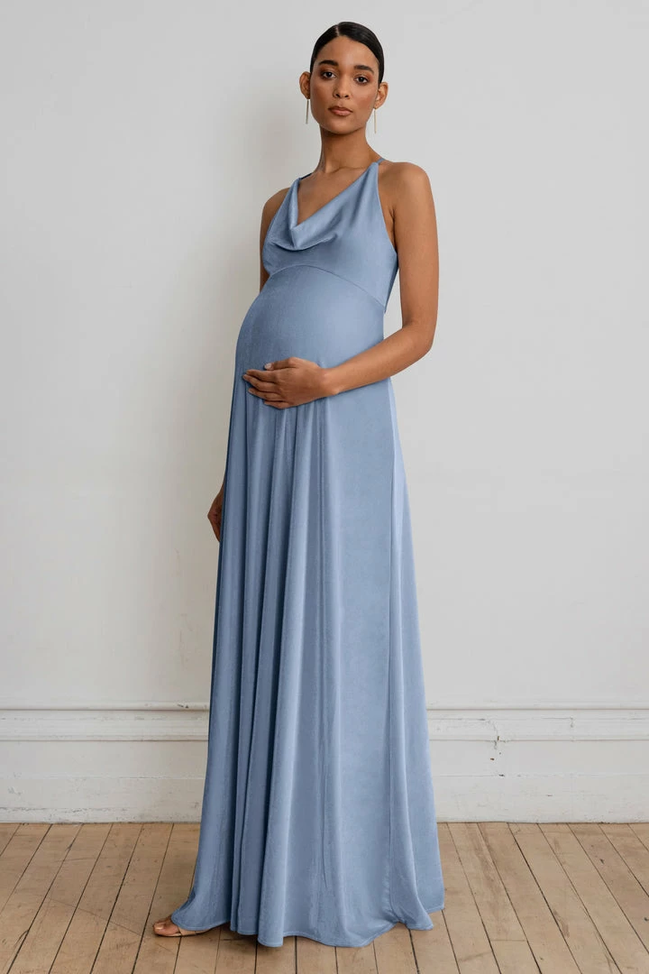 We took everything you love about the Sullivan bridesmaid dress, and redesigned her in a new maternity style! Cut with a higher empire waist seam, and a skirt to accommodate your baby bump!