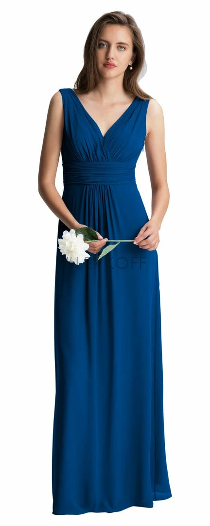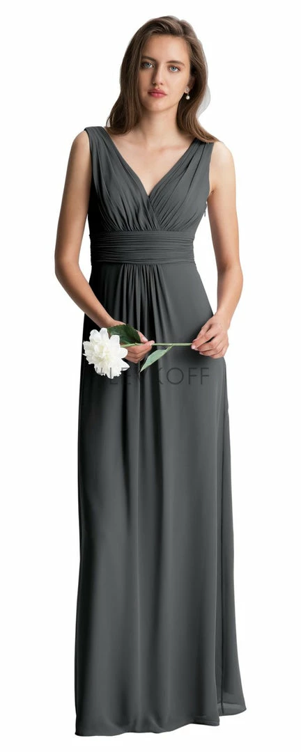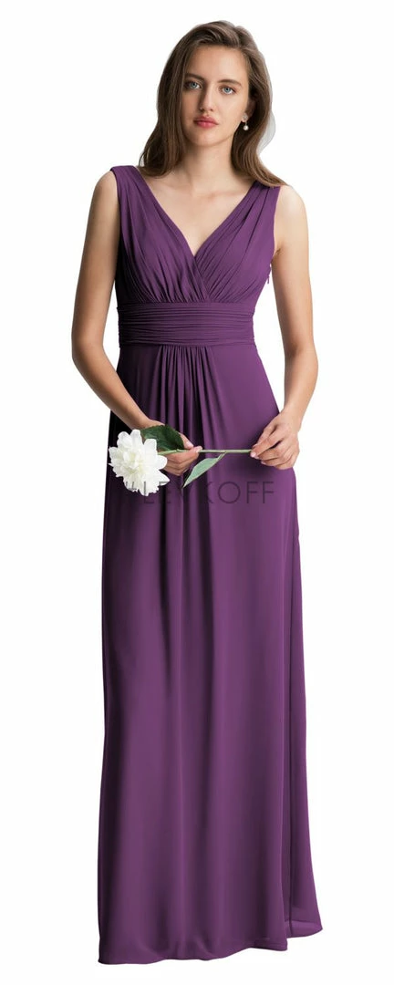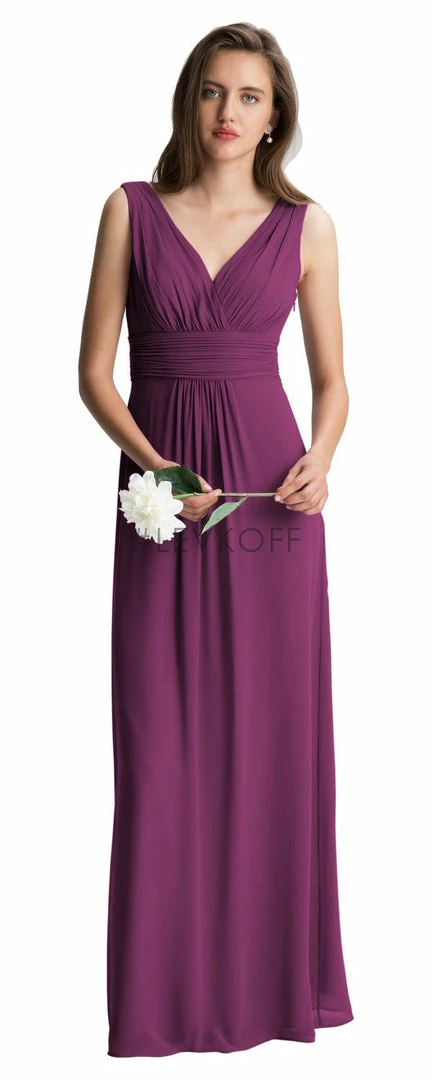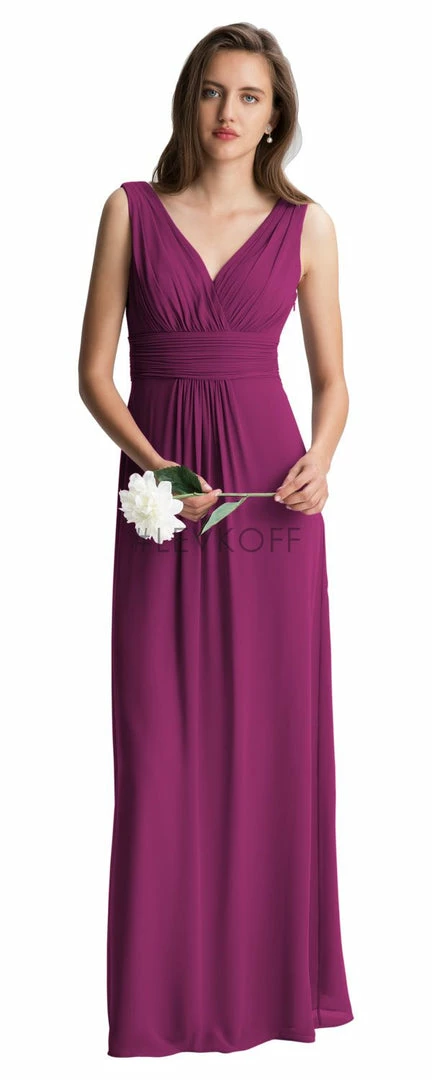 - Chiffon full-length bridesmaid dress.