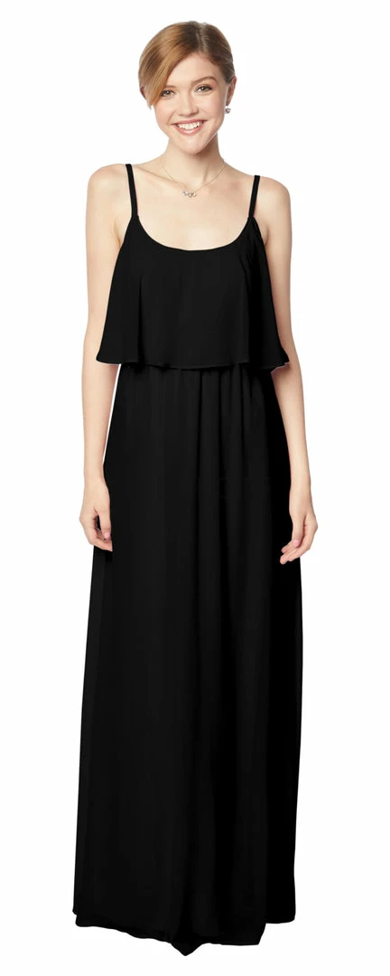 - Chiffon full-length bridesmaid dress.
