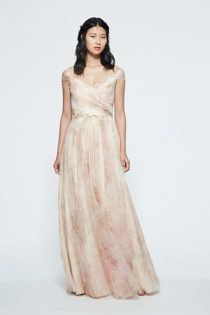 Marchesa Notte Ruched Bodice Multi Sleeve Bridesmaid Dress