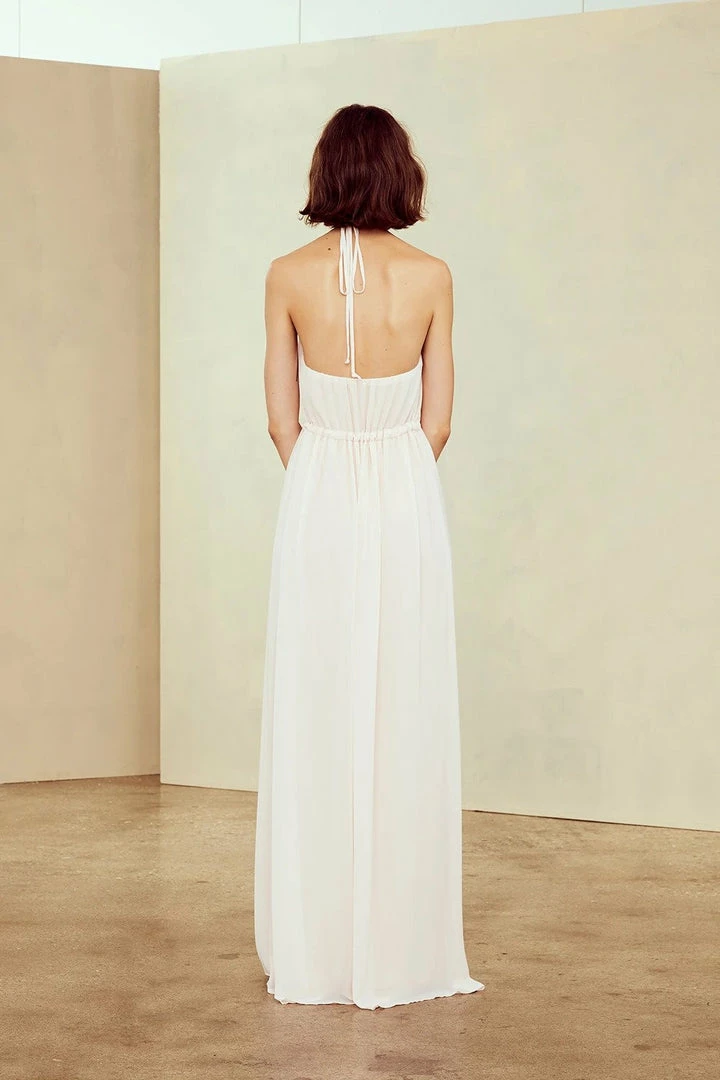- High halter neckline