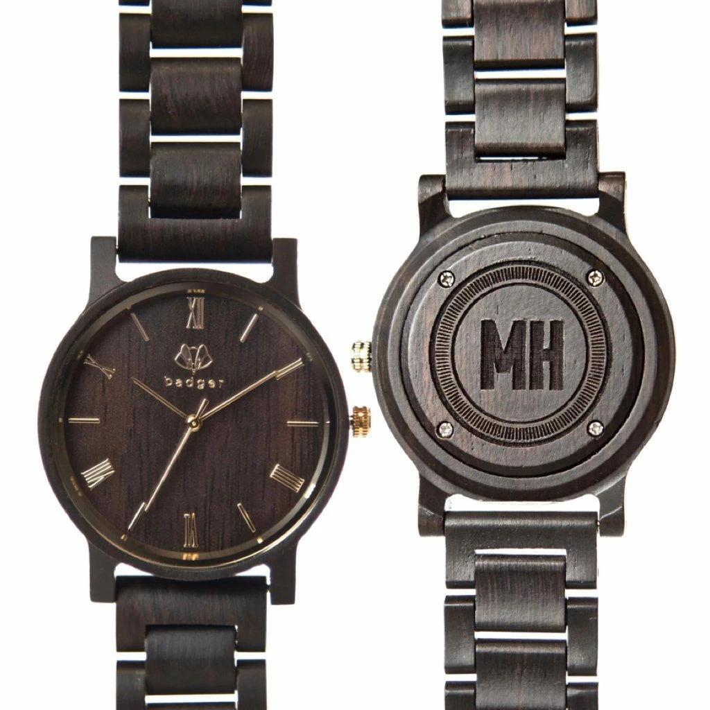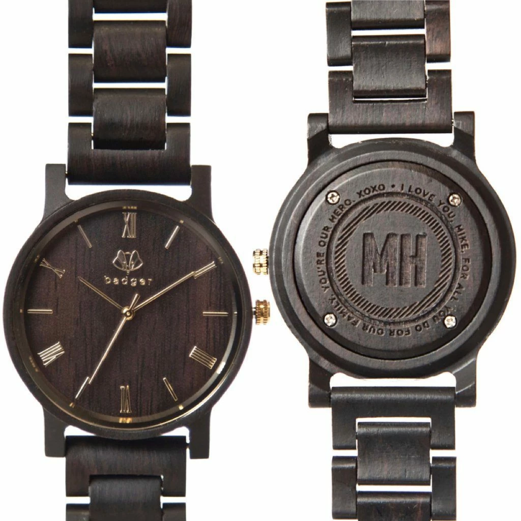 This engraved ebony wood watch is the perfect gift for men. Personalized with the message of your choice, this custom watch will be displayed with pride for years to come. It’s a great gift for groomsmen, boyfriends, husbands and fathers alike.