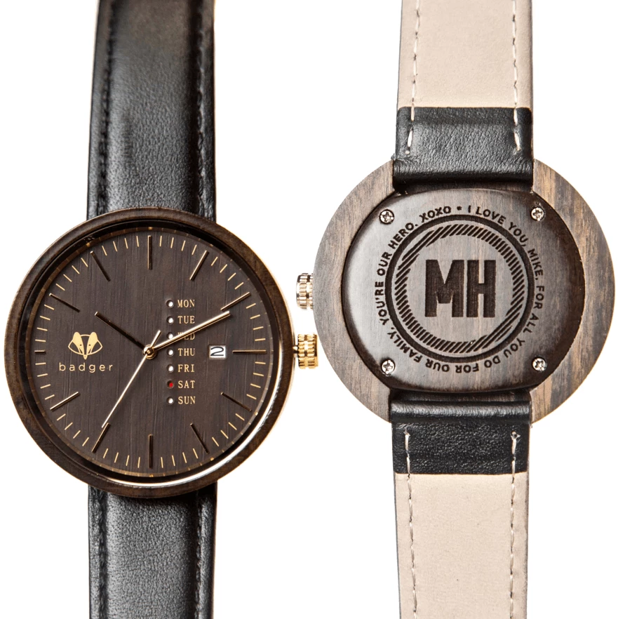 This engraved sandalwood watch is the perfect gift for men. Personalized with the message of your choice, this custom watch will be displayed with pride for years to come. It’s a great gift for groomsmen, boyfriends, husbands and fathers alike.