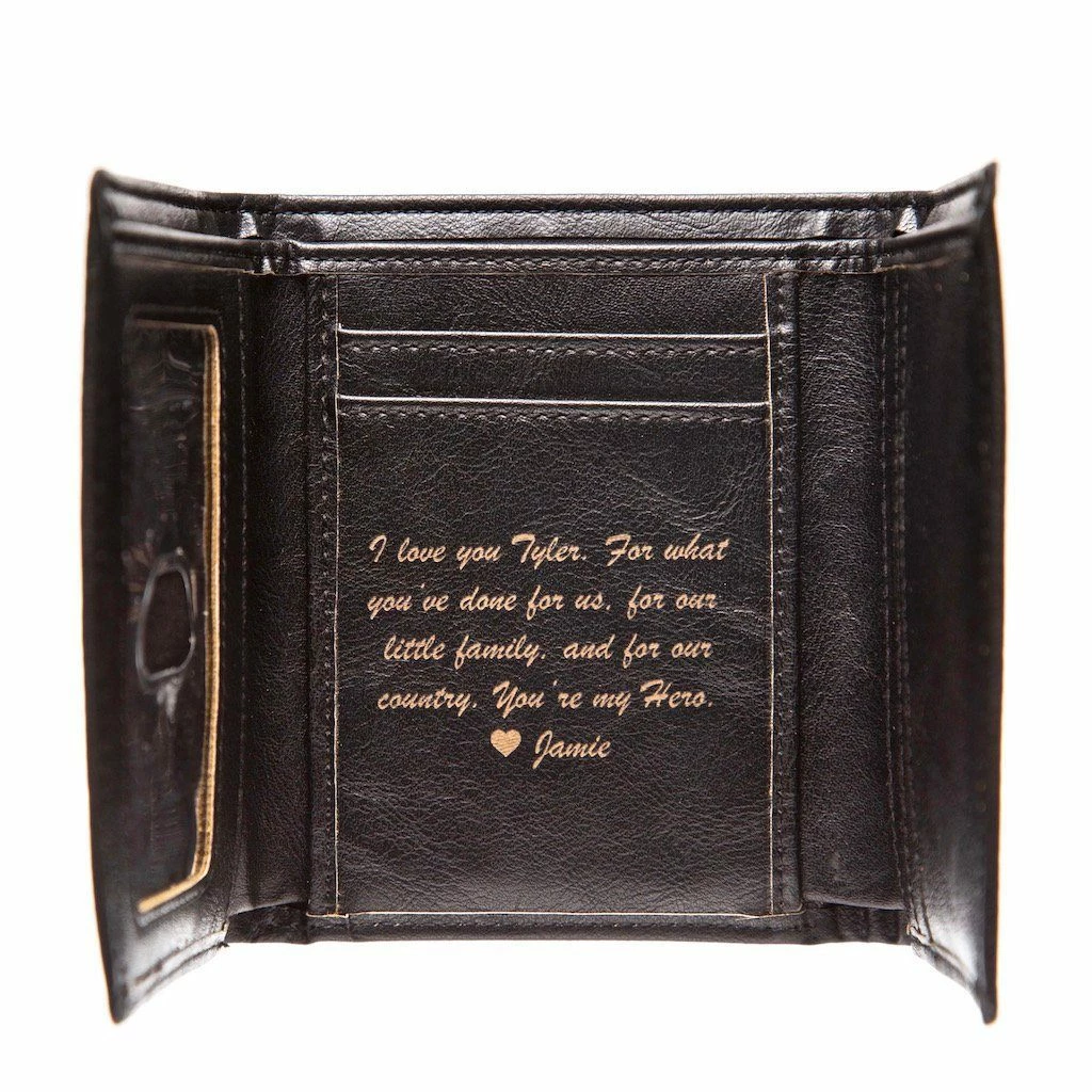 This custom trifold wallet will be displayed with pride for years to come, guaranteed! It’s a great gift for grooms and groomsmen. The perfect men’s gift.