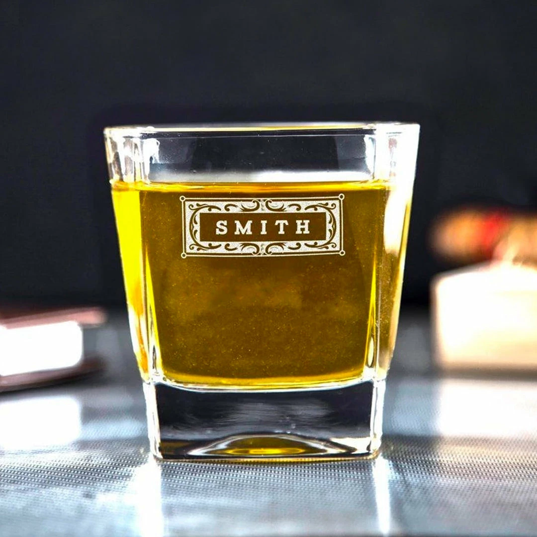 These engraved whiskey glasses are the perfect men’s gift. Personalized with the name or initial of your choice and matched up with one of our beautiful whiskey decanters, these custom whiskey glasses will be displayed with pride for years to come. It’s a great gift for both groom and groomsmen alike.