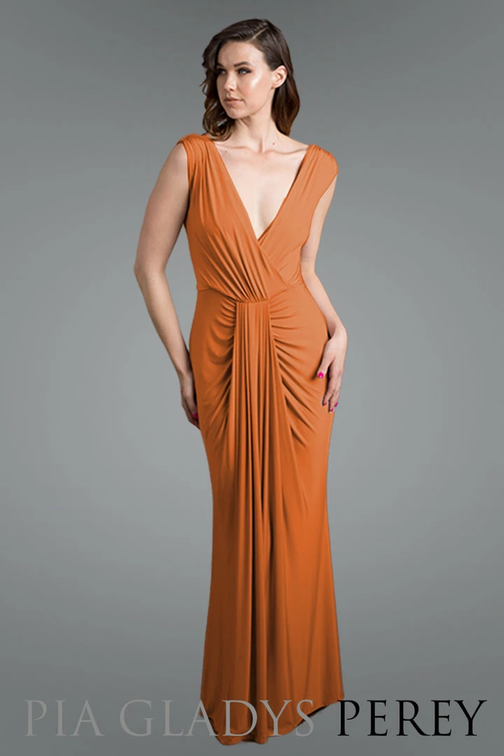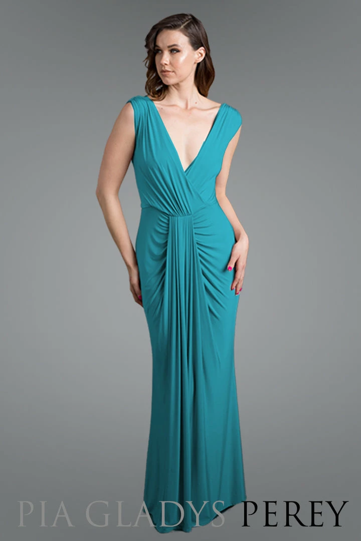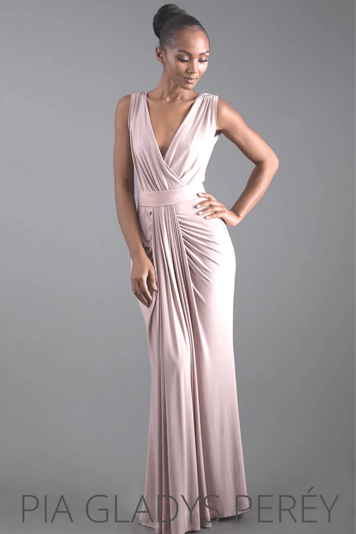 Another classic, the Jessa dress has a V-neckline and overlap detail. Heavy pleating on the skirt that creates both shape and coverage.