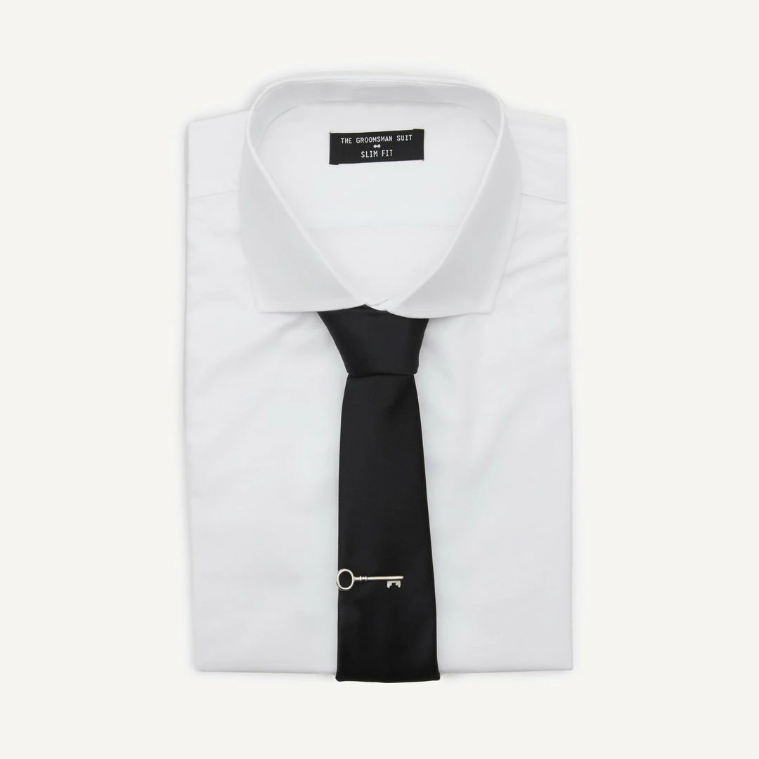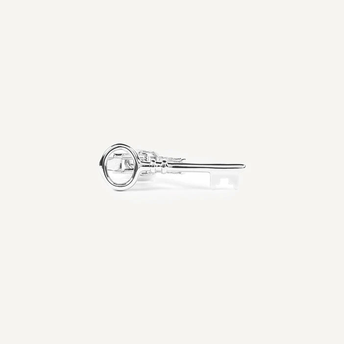 This silver key tie bar is a fun eye catching statement for any wardrobe. An accessory like this matches with almost anything, making it perfect for the work day or try dressing it up for weddings and special occasions.