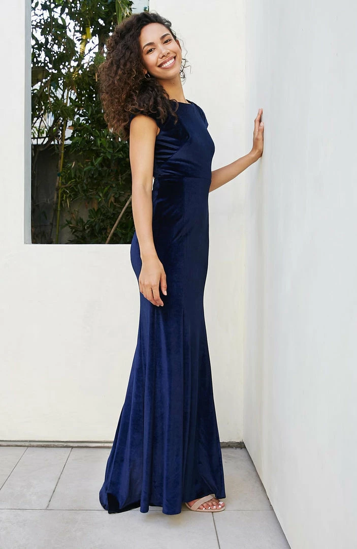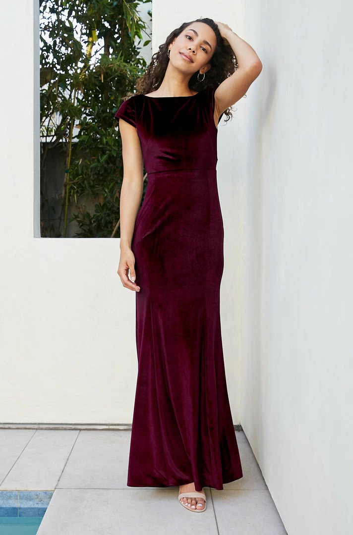 SKU: watters-6022414696608 Category: All Bridesmaid Dresses Tags: Color: Black, Color: Lilac/Purple, Fabric: Vinca Stretch Velvet, Price: $250.00 - $295.00, Silhouette: Trumpet/Mermaid, Size: 10, Size: 22W, Size: 8