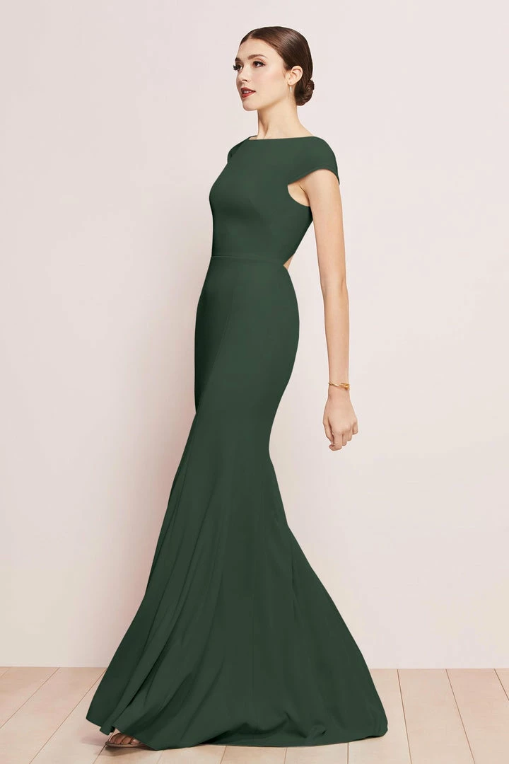 Designed to make every other bridesmaid jelly, our curve-hugging Parker has flattering cap sleeves and a sexy back cutout.
