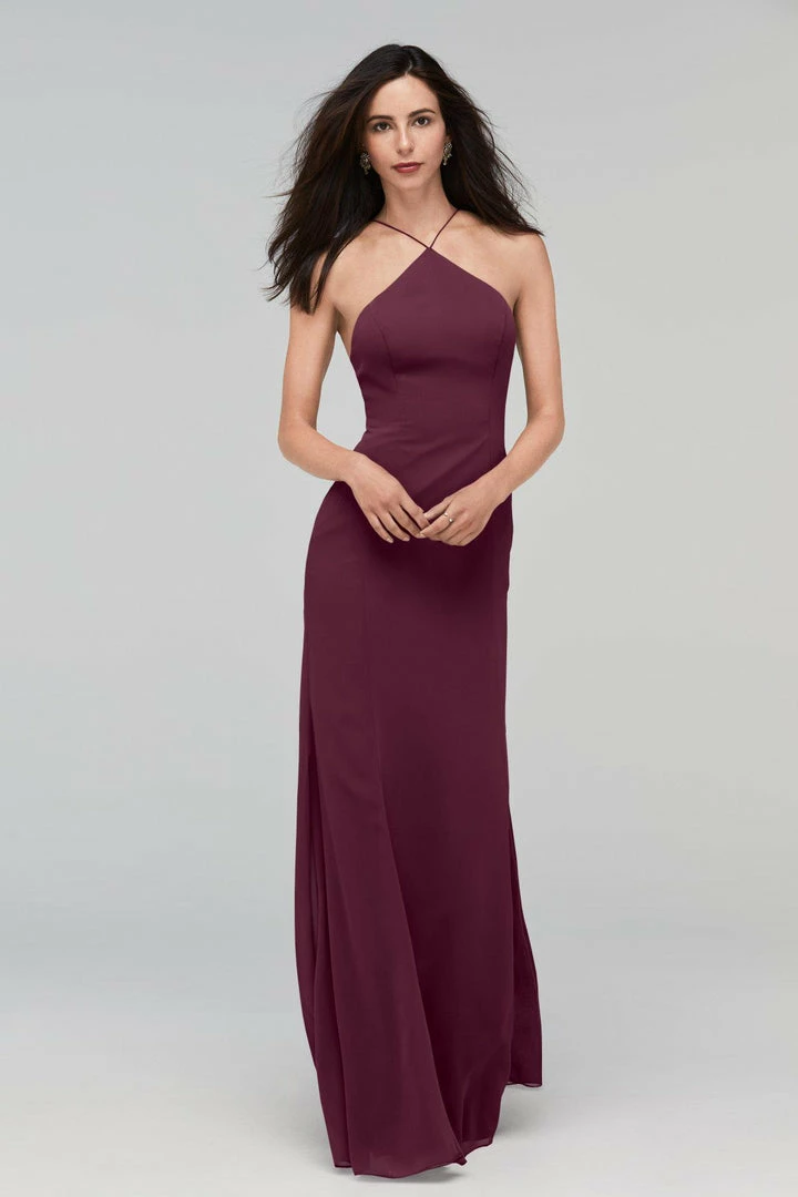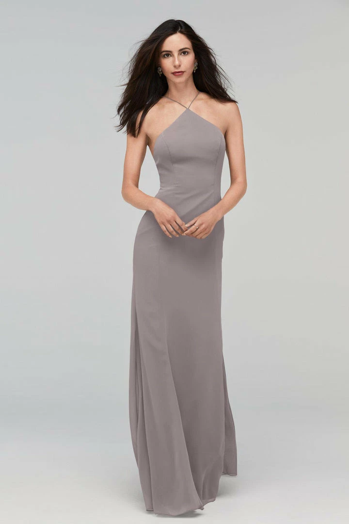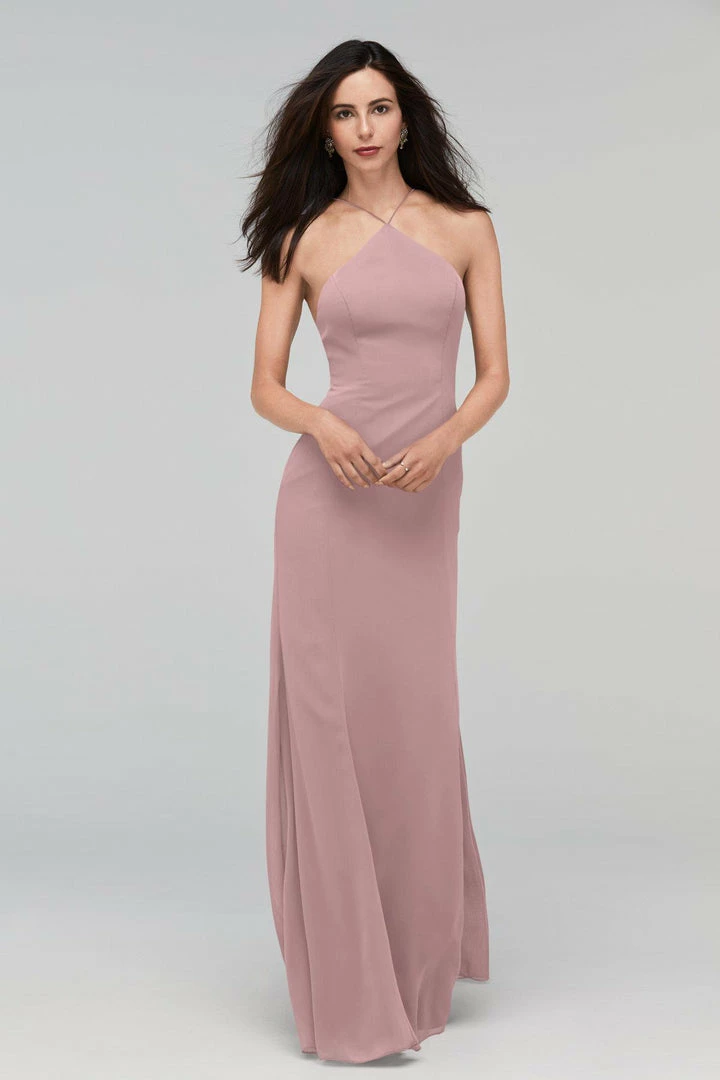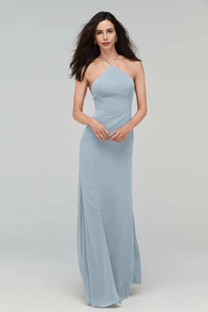 Whitney gets to the point in a high halter neck with a low scoop back. Crinkle chiffon skims your figure for a flattering fit.