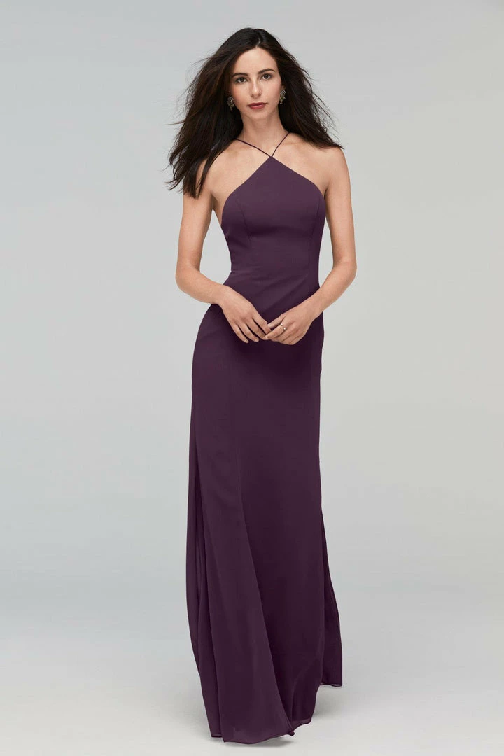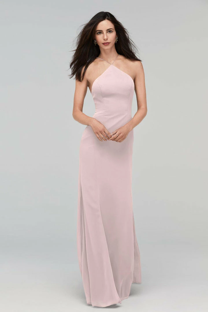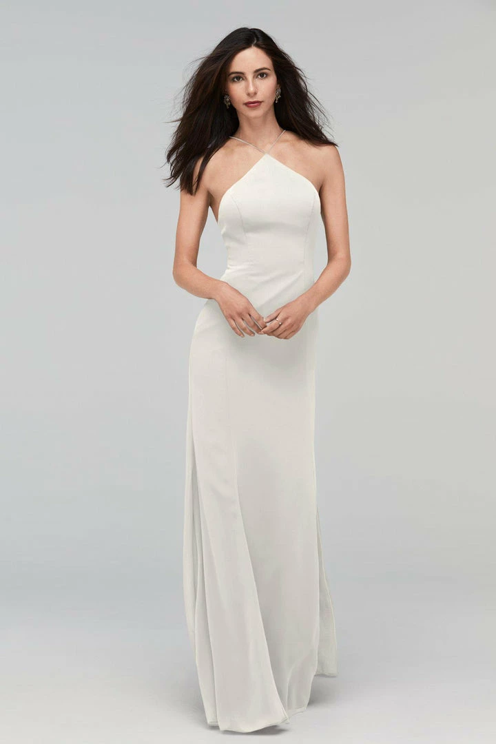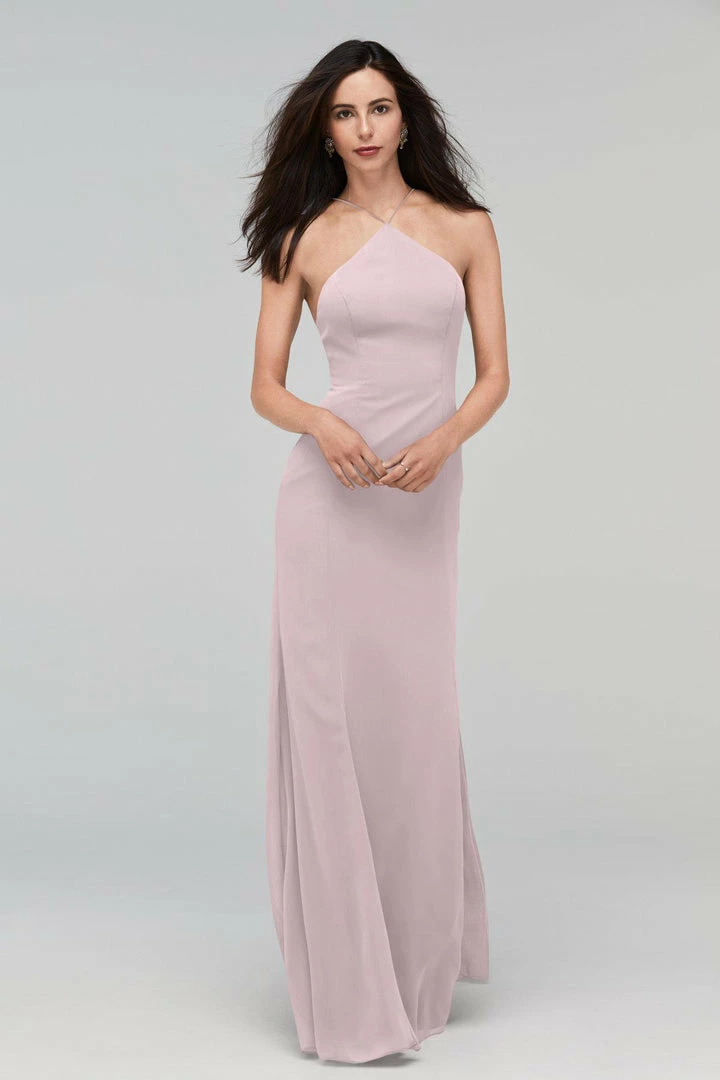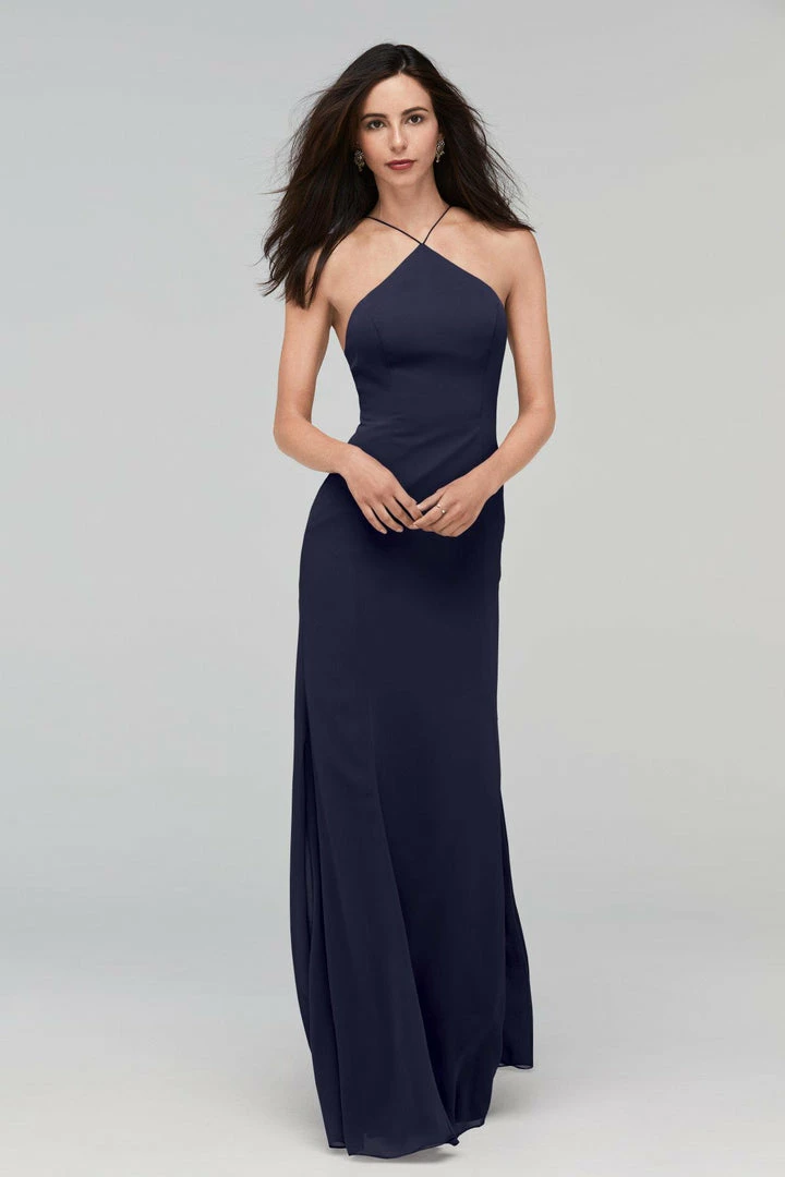 Whitney gets to the point in a high halter neck with a low scoop back. Crinkle chiffon skims your figure for a flattering fit.