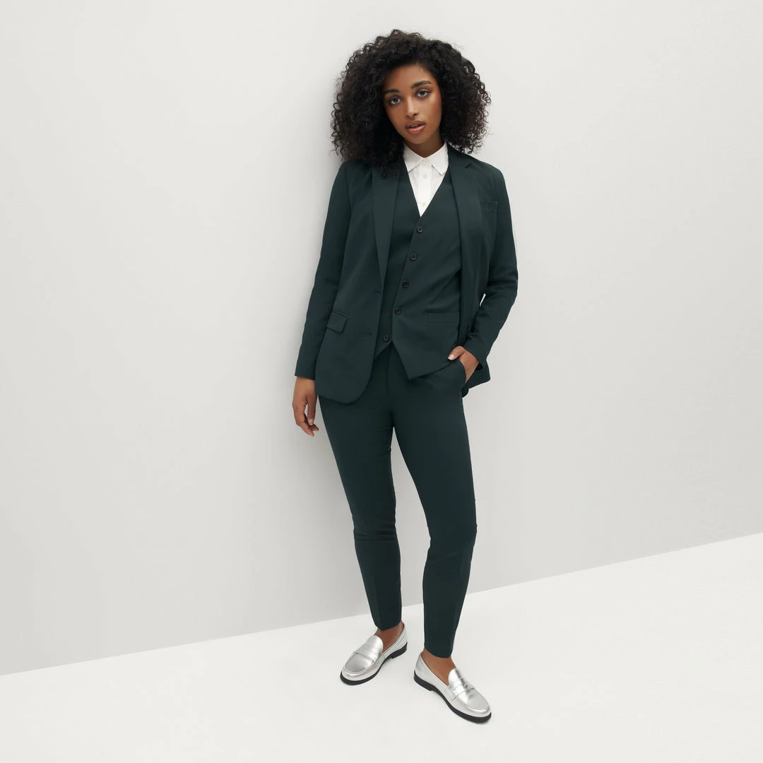 Our dark green pantsuit is set to stun. Earthy and jewel-toned, this deep emerald color universally flatters and breaks the mold without sacrificing classic style. Constructed from our luxe, stretch-fit, this hunter green suit guarantees you’ll stand out, look sharp, and stay comfortable at your next party or event.
