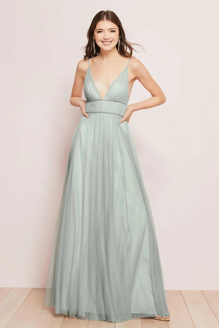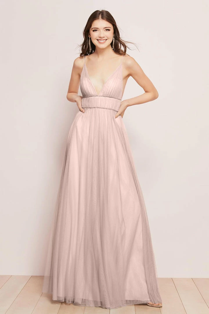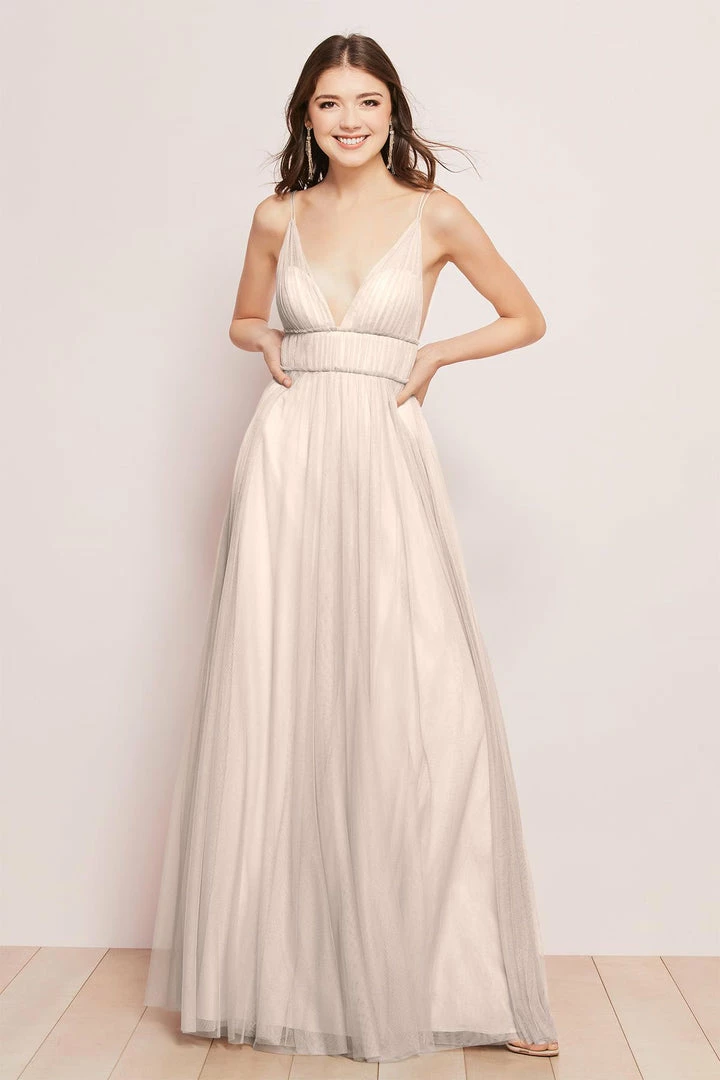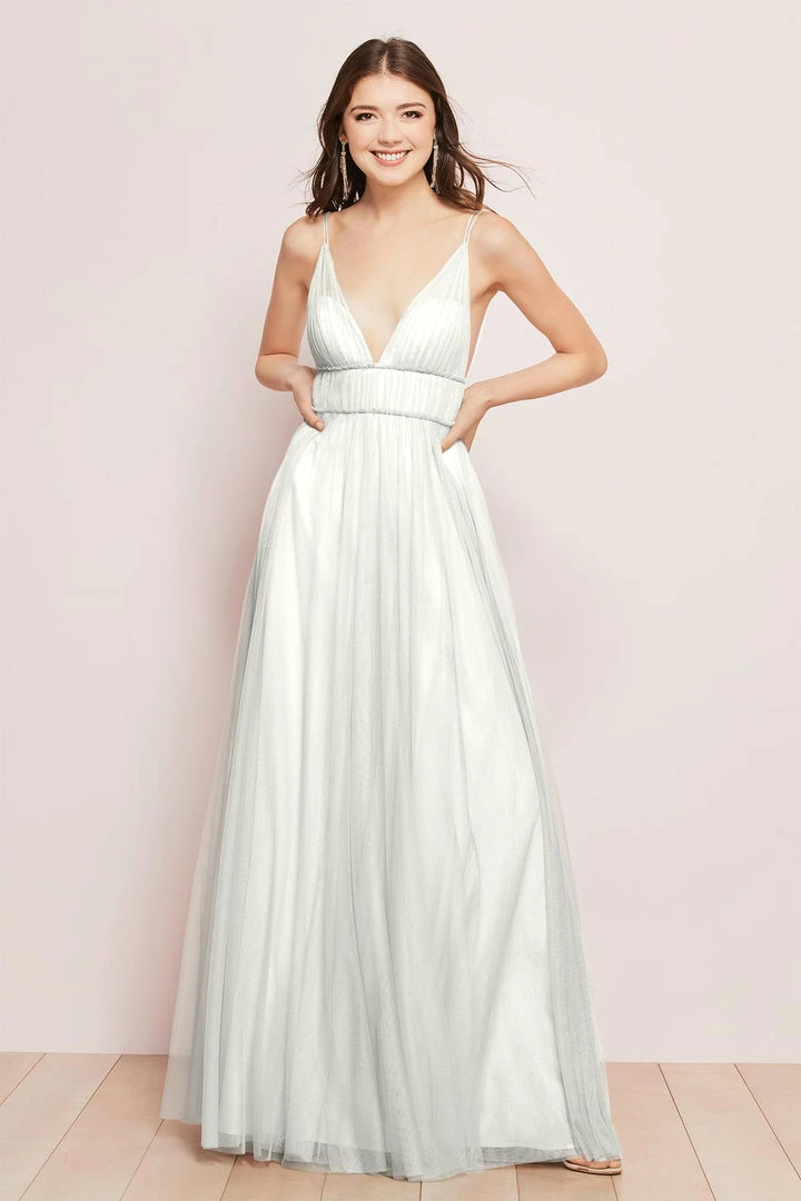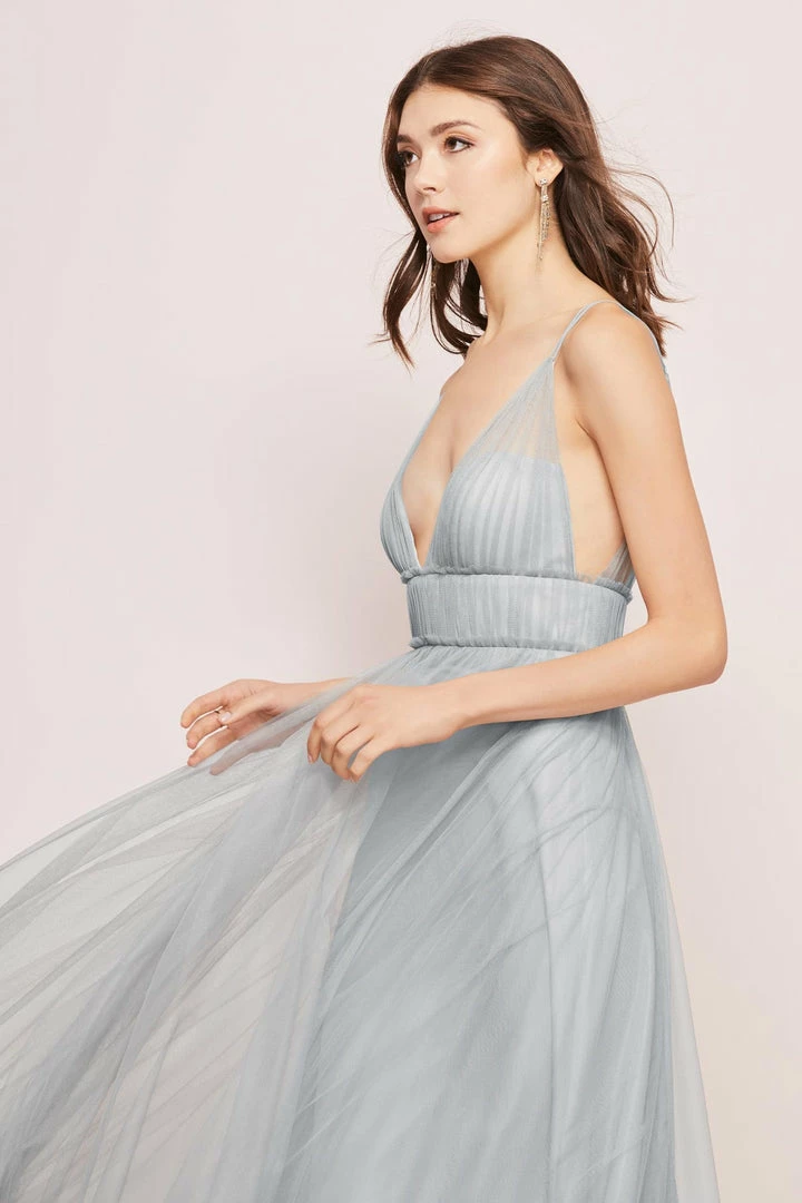 Just because you’re the bridesmaid doesn’t mean you don’t want to look awesome‚ v-necked Callie amazes with a shirred bobbinet overlay.